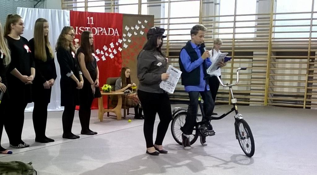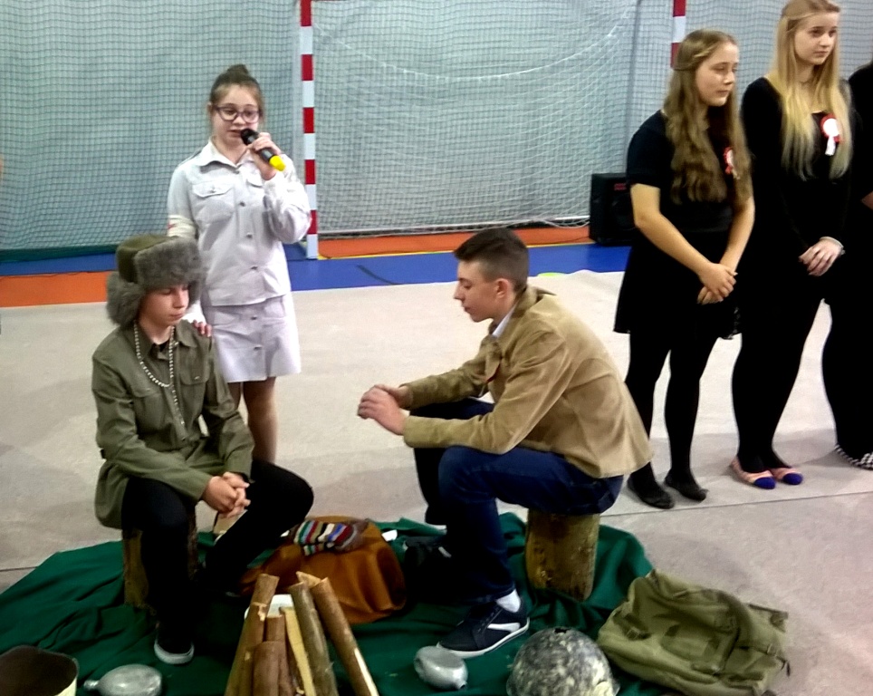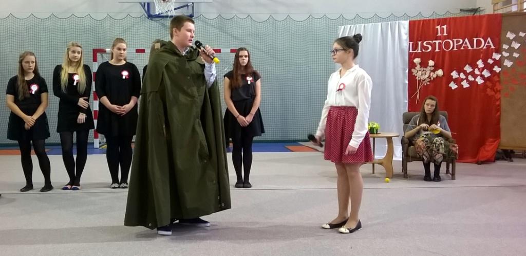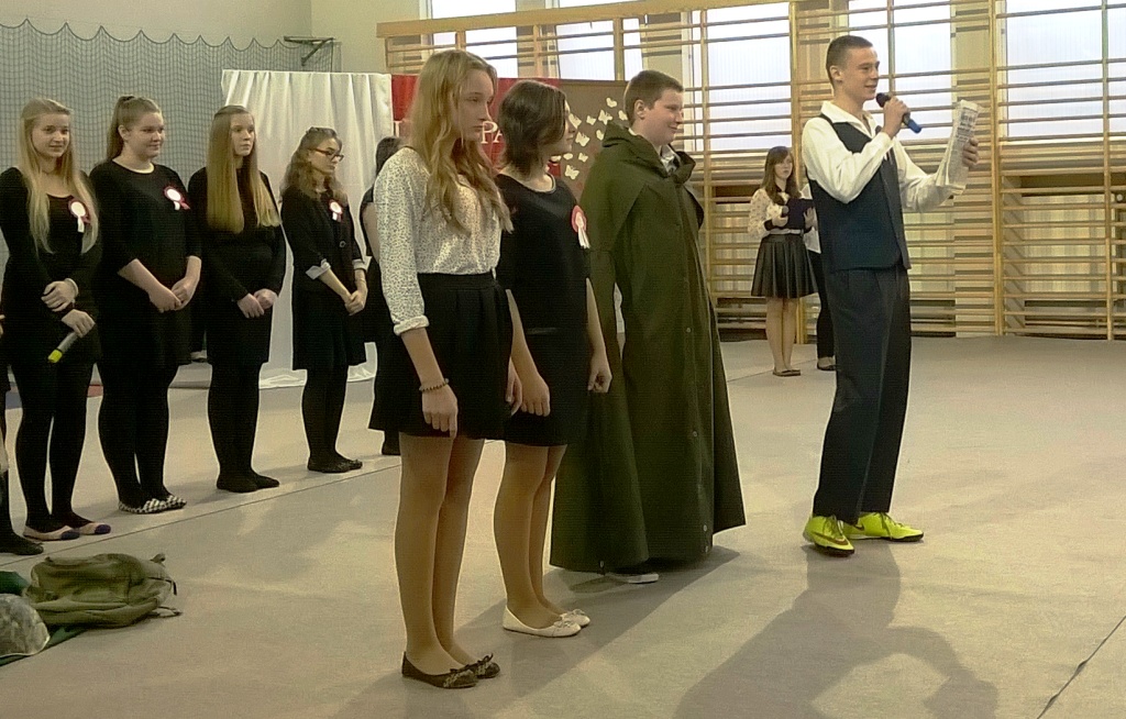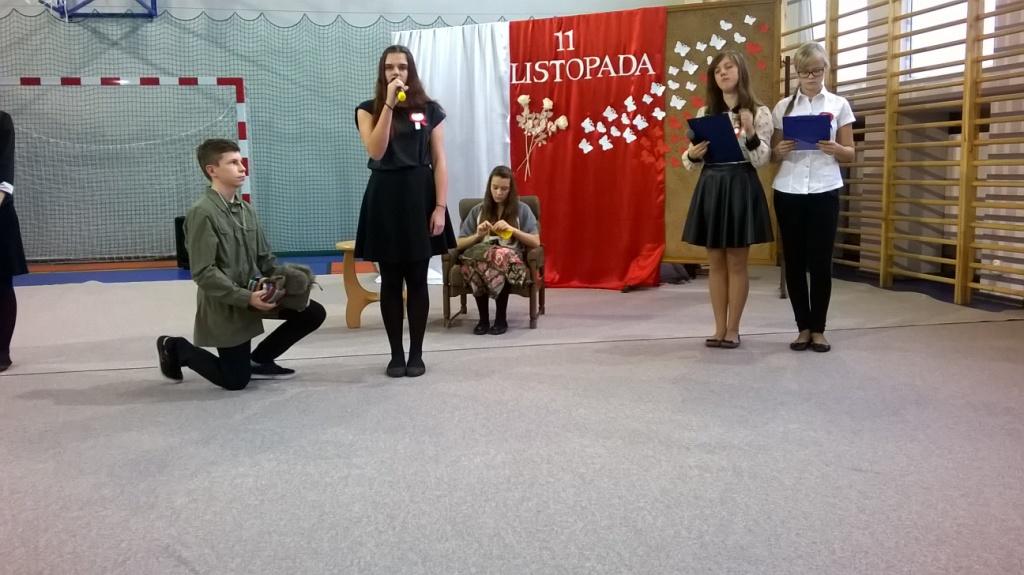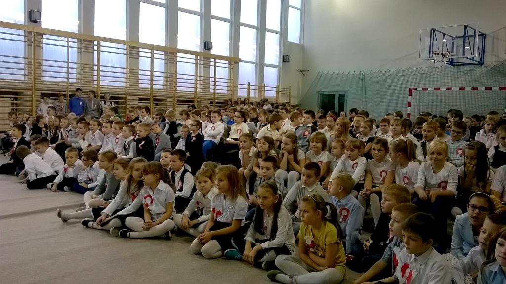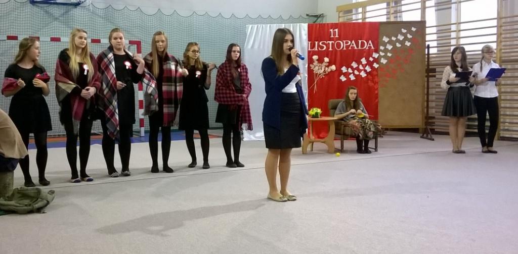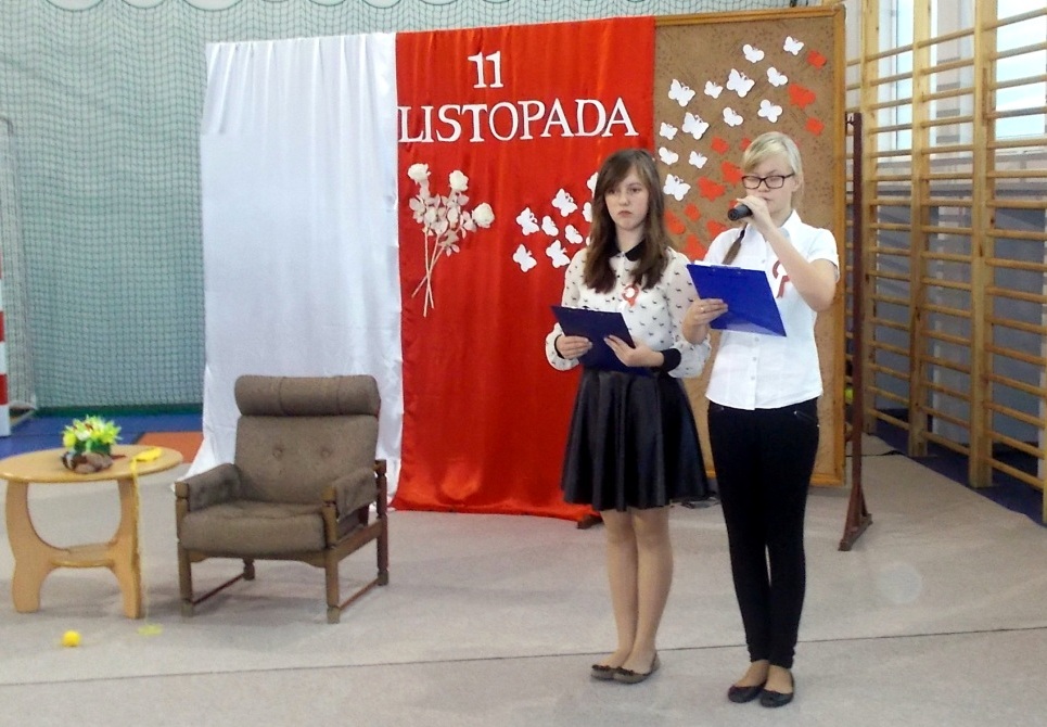 We środę, 11 listopada 2015 roku, w całej Polsce, przy udziale najwyższych władz państwowych w Warszawie oraz samorządowych w mniejszych miastach, odbywały się uroczyste obchody dziewięćdziesiątej siódmej rocznicy odzyskania niepodległości przez naszą Ojczyznę. Jak co roku tę ważną, historyczną rocznicę uczciliśmy także w naszej szkole. Patriotyczną akademią przygotowała pani Dorota Zalewska z młodzieżą gimnazjalną oraz pani Ewa Dębko z Zespołem Muzycznym. Montaż słowno-muzyczny nie tylko przypomniał historię naszego kraju z czasów, gdy na 123 lata zniknęliśmy z mapy Europu i świata, ale był też ważną lekcją patriotyzmu.