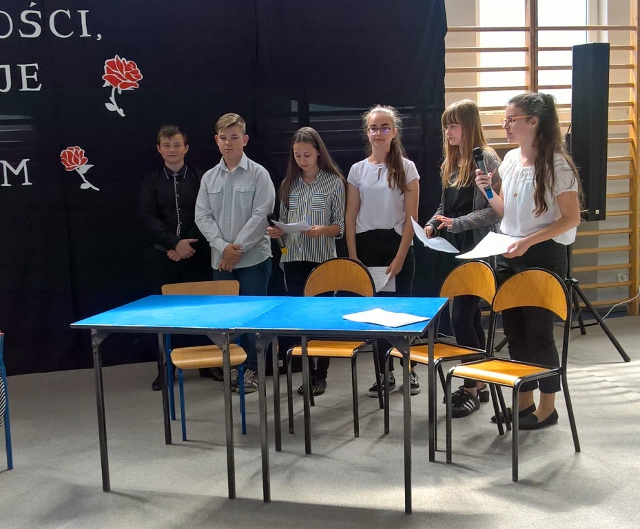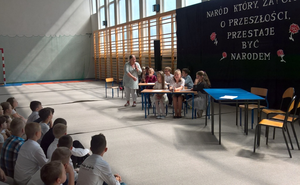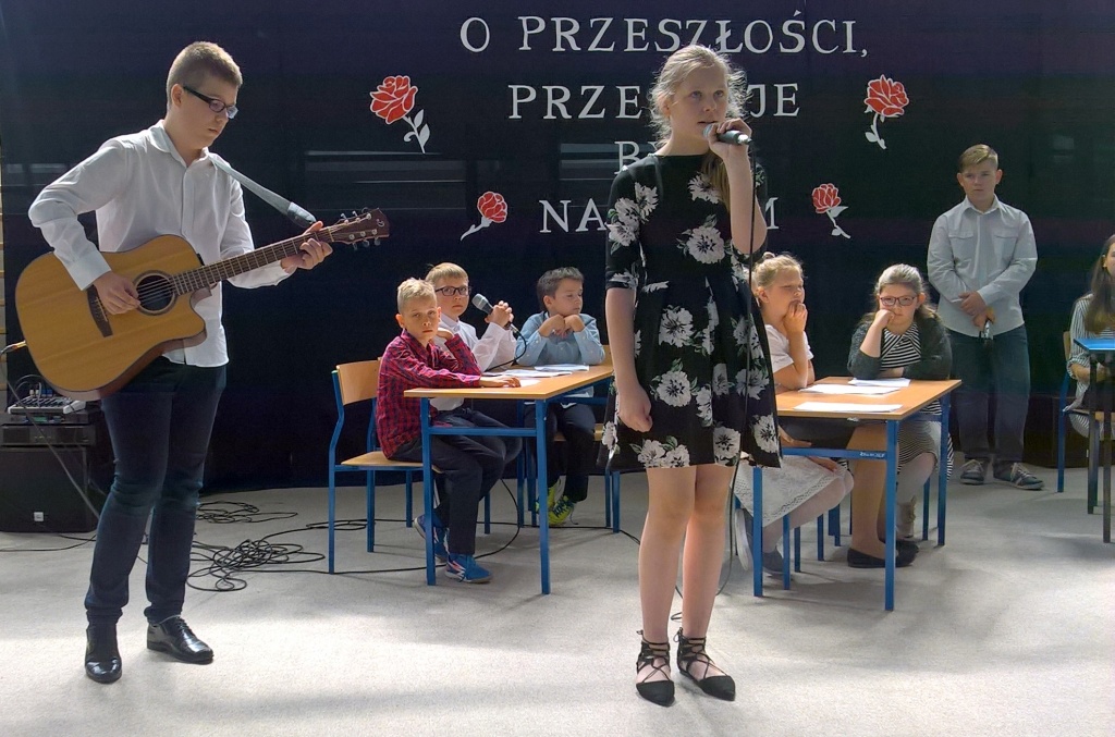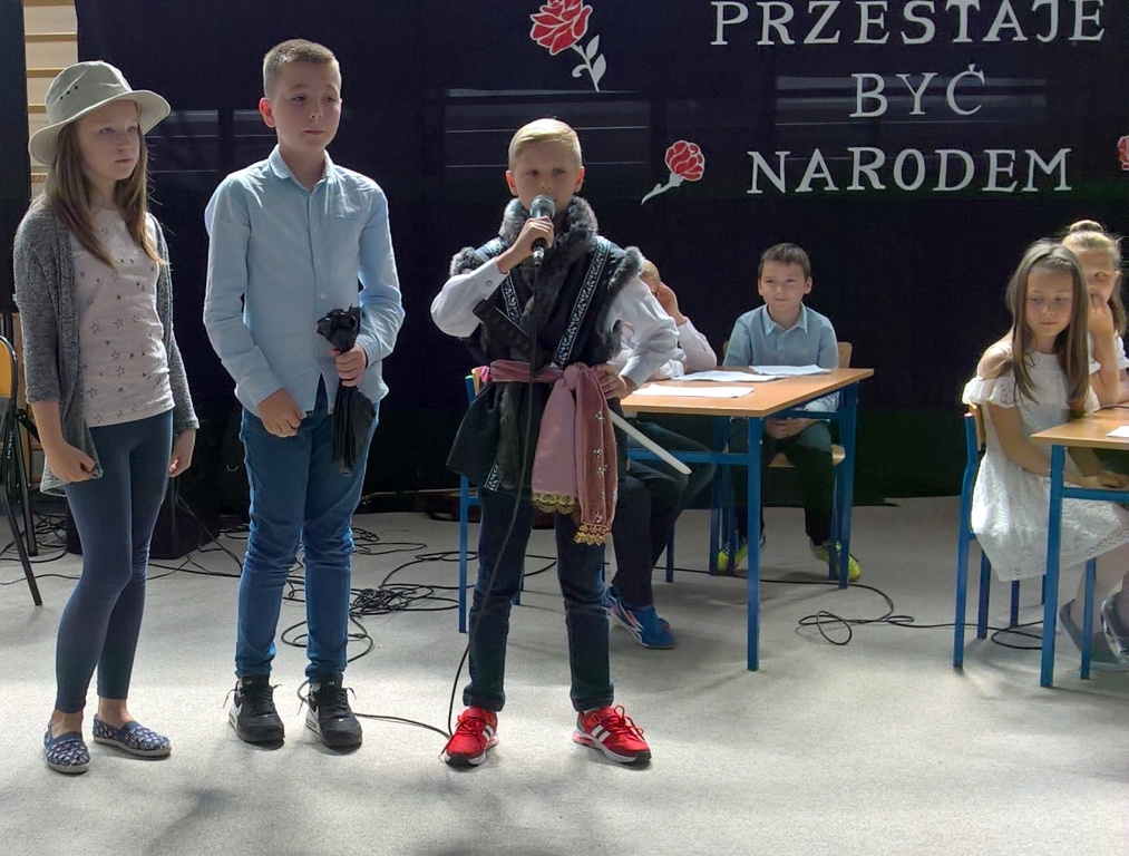 We wtorek w naszej szkole odbyła się uroczysta akademia z okazji 226 rocznicy uchwalenia Konstytucji 3 Maja. Uczniowie szkoły podstawowej oraz gimnazjum przybyli na uroczystość z przypiętymi biało-czerwonymi kotylionami, co podkreśliło wagę tego wydarzenia i było symbolem patriotyzmu. Młodzież pod kierunkiem pani Katarzyny Daszuta zaprezentowała program słowno-muzyczny, który był cenną lekcją przeszłości Polski. Treści zawarte w scenariuszu przybliżyły okoliczności powstania tego ważnego dokumentu, twórców tej ustawy i jej główne postanowienia. Uczniowie wysłuchali komentarzy historycznych, recytowanych utworów lirycznych poświęconych wydarzeniu i pieśni patriotycznych.
