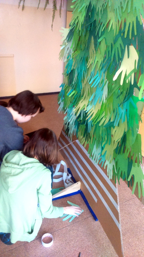 Na wyróżnienie zasługuje klasa V A, która liczy najwięcej uczniów w naszej szkole a to zadanie wykonała w czasie 9 minut – Gratulujemy zręczności !! Klasa II A i VA otrzymały jako nagrodę „wilcze bilety „. Do akcji przyłączyli się uczniowie klas I – III, którzy wycinali wolniej, lecz z wielkim zaangażowaniem.