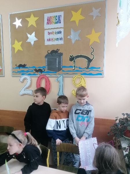 Tradycja andrzejkowa znana jest w Polsce od prawie 500 lat. Andrzejki związane są przede wszystkim z wróżbami, do których niegdyś podchodzono niezwykle poważnie. Miały one m.in. przepowiedzieć dziewczętom kiedy wyjdą za mąż, kogo poślubią, gdzie spotkają swojego wybranka. Jednak w dzisiejszych czasach Andrzejki to przede wszystkim okazja do świetnej zabawy. Taką zabawę przygotowały uczniom klas młodszych wychowawczynie świetlicy. Wróżby przeprowadziły dziewczynki z klasy 3a. Choć wszyscy traktowali je z lekkim przymrużeniem oka, to cieszyły się one ogromnym zainteresowaniem. Zabawa była doskonała, aż żal było wracać do szkolnych obowiązków.