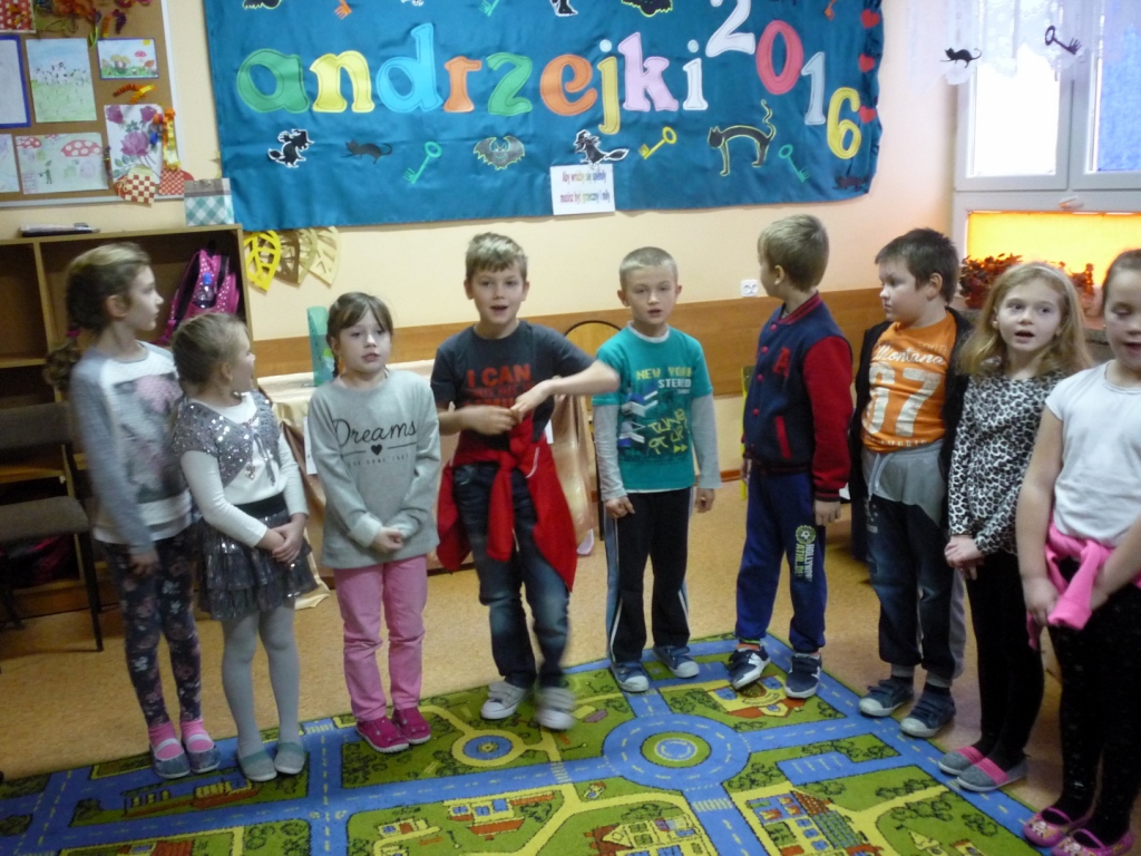 Andrzejki to stara tradycja ludowa przekazywana z pokolenia na pokolenie. Według dawnych wierzeń ten dzień miał magiczną moc, gdyż uchylał wrota do nieznanej przyszłości. Dziś tradycyjne andrzejki to ciekawy pomysł na zabawy i wspólne spędzenie czasu w gronie rówieśników. W zaczarowany świat magii i wróżb w dniu dzisiejszym przeniosły się dzieci z klas początkowych naszej szkoły. Spotkanie rozpoczęło się od okrzyku „Aby wróżby się spełniły, musisz grzeczny być i miły”. Siedząc w magicznym kręgu, dzieci zapoznały się z gawędą na temat ludowych tradycji andrzejkowych. Na uroczystości pojawiły się andrzejkowe wróżki: Dobre Serce, Pracuś, Sprawiedliwa Rączka i Dobroć, które przy pomocy rekwizytów przepowiadały dzieciom przyszłość, m.in. jaki zawód będą wykonywać, gdzie udadzą się w podróż, czy też czego powinny się wystrzegać. Uczestnicy imprezy wróżyli sobie też, przebijając szpilką papierowe serce z napisanymi imionami, losowali karty z przepowiednią i magiczne żetony. Czas pomiędzy wróżbami urozmaicały zabawy przy piosenkach z repertuaru dziecięcego. Andrzejkowe zabawy dostarczyły wszystkim uczestnikom wielu niezwykłych przeżyć i emocji. Na zakończenie spotkania dzieci dostały magiczne cukierki, które miały moc spełniania wszystkich życzeń.