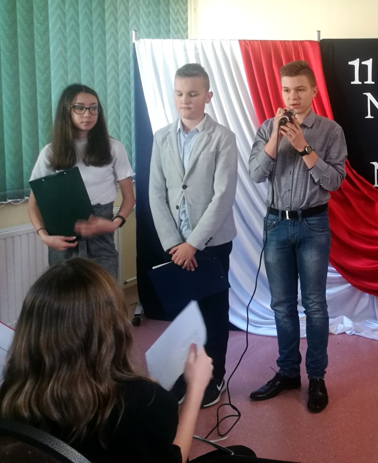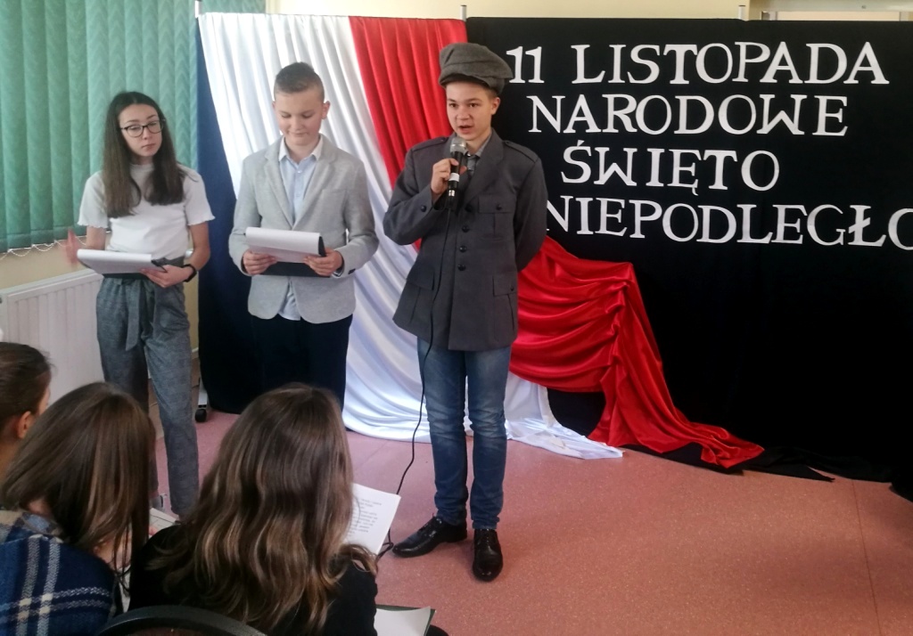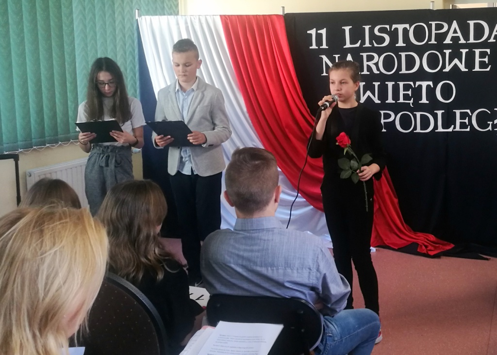 Dnia 12 listopada 2019 r. w naszej szkole odbył się uroczysty apel upamiętniający 101 rocznicę odzyskania przez Polskę niepodległości. Część artystyczna wprowadziła zgromadzonych w atmosferę wydarzeń poprzedzających datę 11 listopada 1918 roku. Drogę Polski do niepodległości przypomnieli uczniowie klasy VIIa pod kierunkiem p. Doroty Zalewskiej, a chór szkolny prowadzony przez p. Ewę Dębko wykonał kilka pieśni patriotycznych. Utwór w wersji instrumentalnej na skrzypcach zagrała Natalia Białobłocka. Dzień ten w naszej szkole stał się dla wielu lekcją historii.