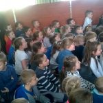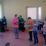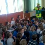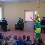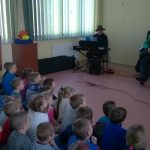 „Muzyczna gąsienica” to tytuł audycji w wykonaniu artystów filharmonii, wyjaśniającej dzieciom trudny temat elementów dzieła muzycznego. Artyści jak zwykle zrobili to w formie zabawy, zapraszając uczniów do wspólnych działań. Bohaterowie spotkania: Gąsienica, Żuk, Konik Polny i niesforna Mucha wspólnie doszli do wniosku, że utwór muzyczny składa się z takich elementów jak melodia, rytm, tempo, dynamika, barwa dźwięku u harmonia. Na pełnym humoru występie nie zabrakło też wspólnego śpiewania piosenek i tego, co dzieci lubią najbardziej: spontanicznego i nieskrępowanego wyrażania emocji.
