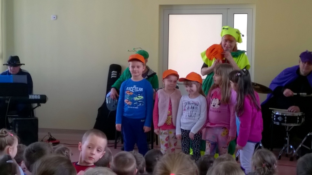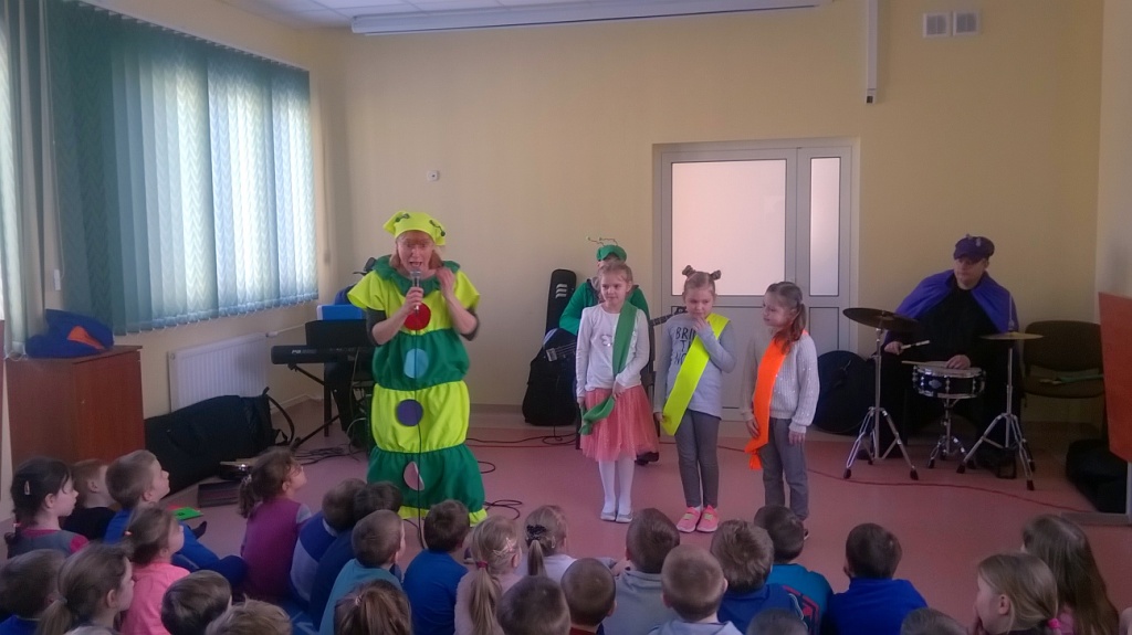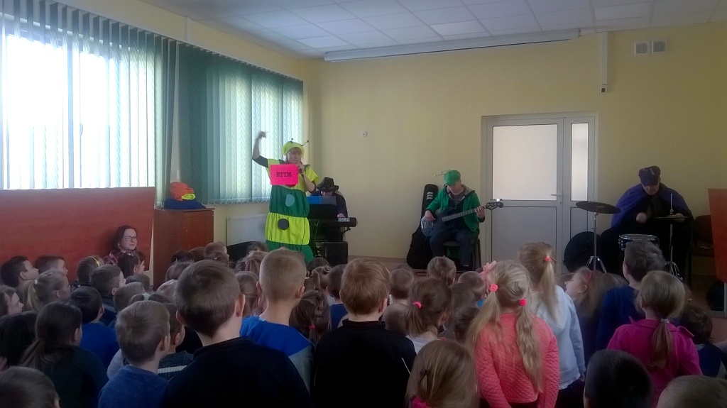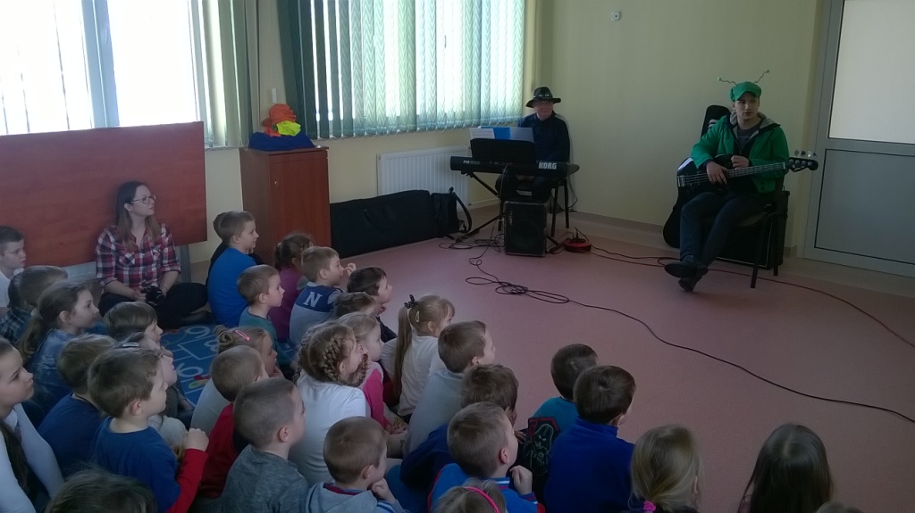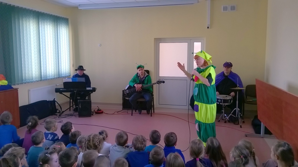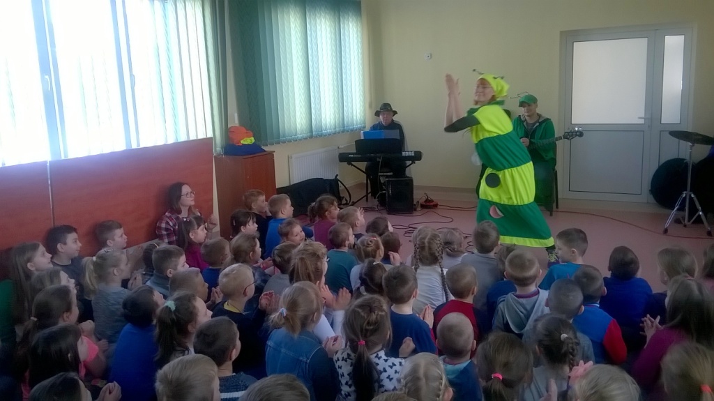 „Muzyczna gąsienica” to tytuł audycji w wykonaniu artystów filharmonii, wyjaśniającej dzieciom trudny temat elementów dzieła muzycznego. Artyści jak zwykle zrobili to w formie zabawy, zapraszając uczniów do wspólnych działań. Bohaterowie spotkania: Gąsienica, Żuk, Konik Polny i niesforna Mucha wspólnie doszli do wniosku, że utwór muzyczny składa się z takich elementów jak melodia, rytm, tempo, dynamika, barwa dźwięku u harmonia. Na pełnym humoru występie nie zabrakło też wspólnego śpiewania piosenek i tego, co dzieci lubią najbardziej: spontanicznego i nieskrępowanego wyrażania emocji.