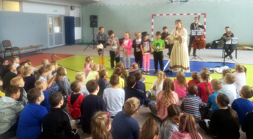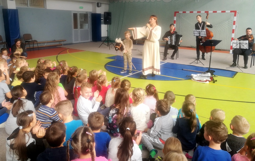 ,, Legendy Podlasia” to muzyczna opowieść o tajemnicach naszego regionu, którą dzieci z klas początkowych obejrzały 10 października 2019 r. w wykonaniu zespołu ARTE- MUZA. Młodzi odbiorcy poznali opowieść o królewiczu Wasylku, duchu z ulicy Lipowej, zakochanej parze z magicznego jeziora i żartach Mikołaja Kawelina. Przy okazji ciekawych historii z białostocczyzny uczniowie zapoznali się również z muzyką i instrumentami typowymi dla różnych środowisk.