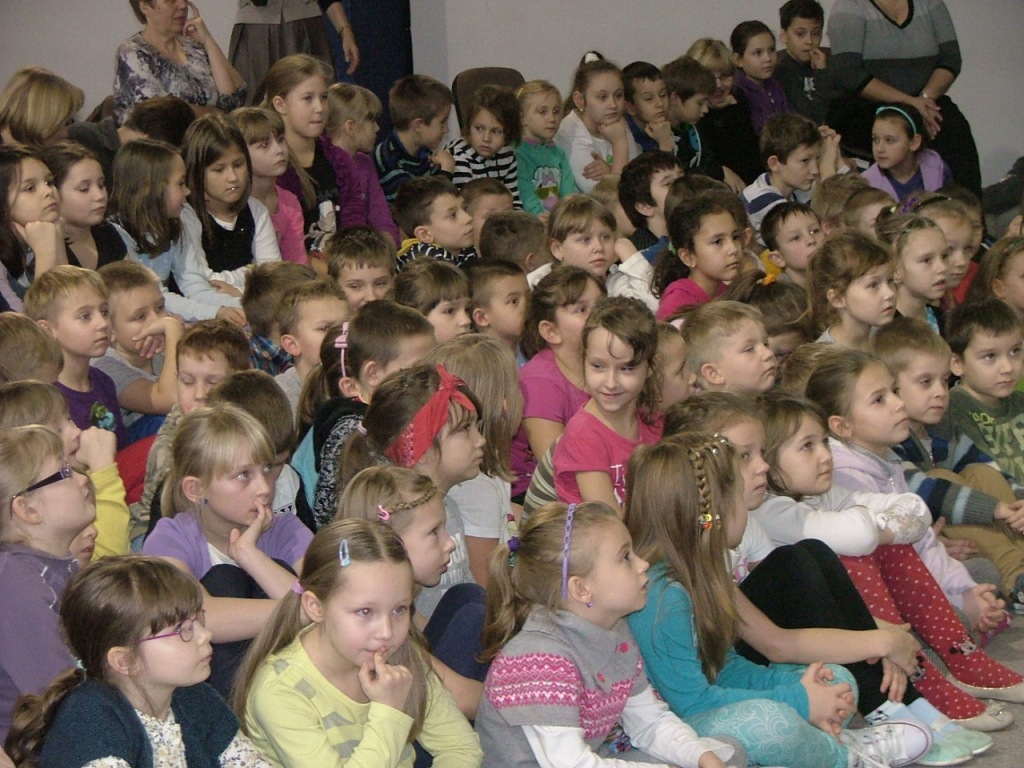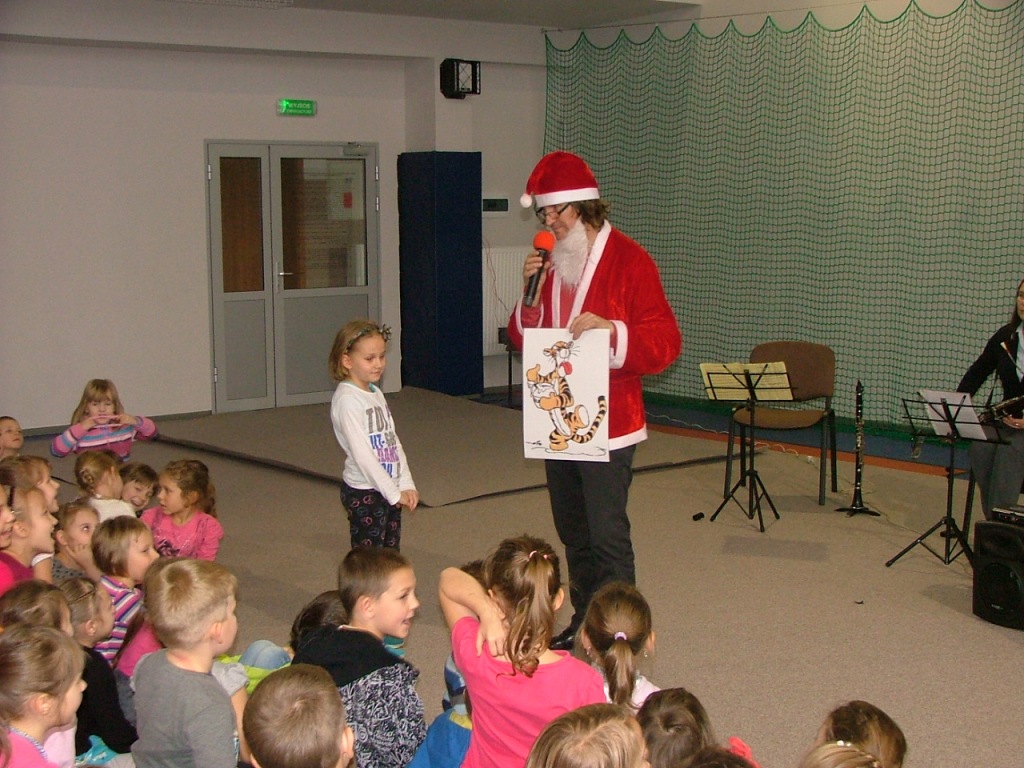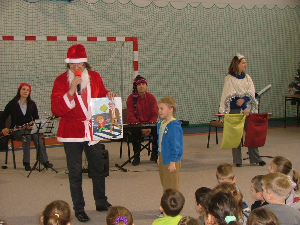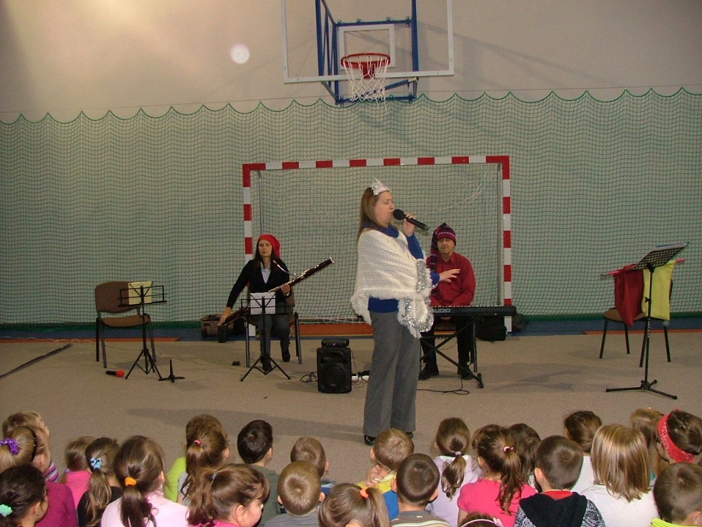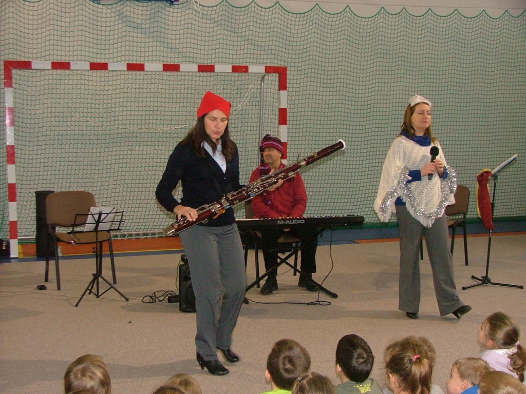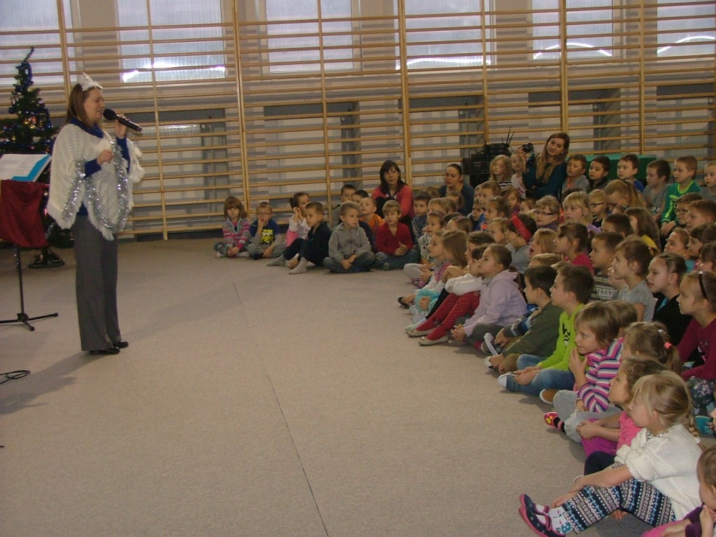 Dzieci z klas edukacji wczesnoszkolnej obejrzały ostatnią w tym roku kalendarzowym audycję muzyczną o tematyce świątecznej. W programie było śpiewanie kolęd i pastorałek, gra na instrumentach perkusyjnych, poznanie nowych instrumentów: fletu i fagotu oraz zabawy muzyczne i nie tylko. W programie wystąpili Śnieżynka, Mikołaj oraz elfy.