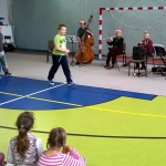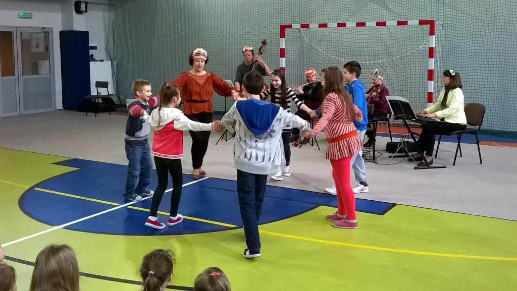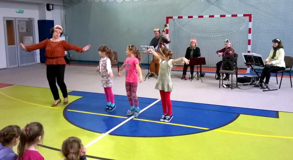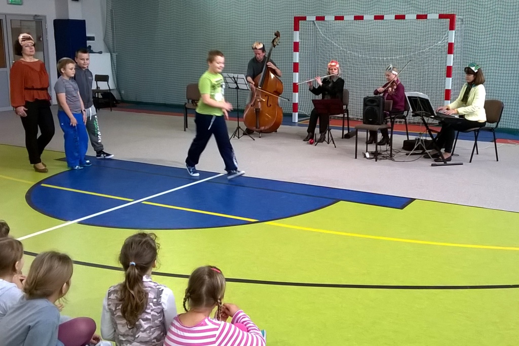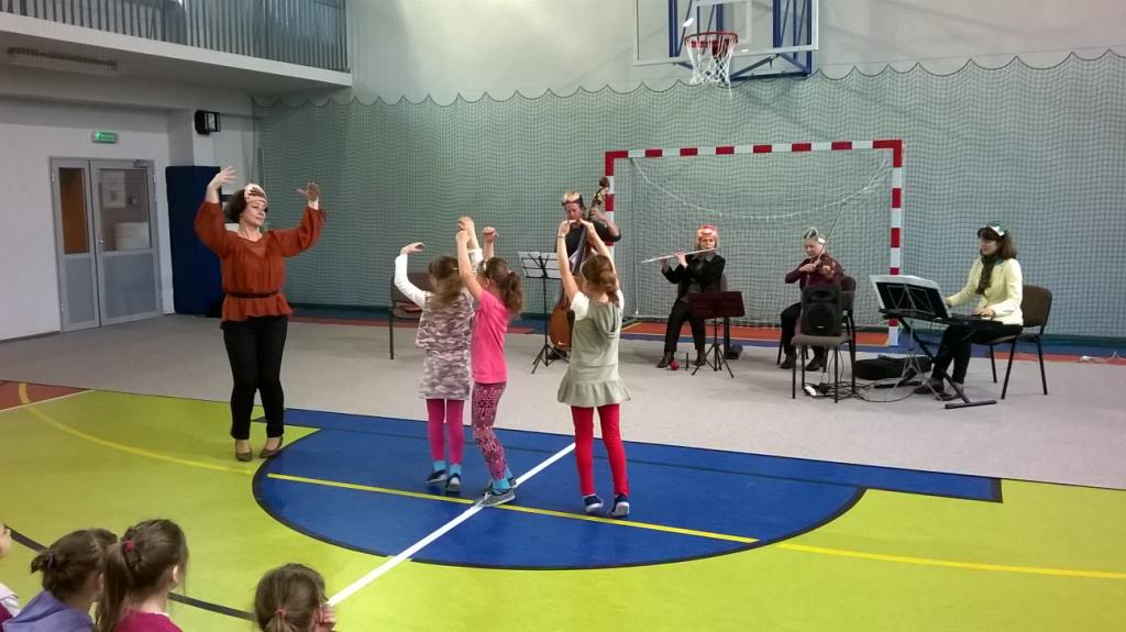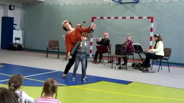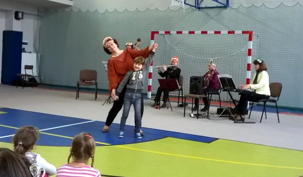 Dzisiejsze spotkanie z artystami Opery i Filharmonii Podlaskiej nosiło tytuł „Muzyczna bajka”. Tematem przewodnim były balet jako przedstawienie muzyczno-taneczne. Dzieci poznały fragmenty wybitnych dzieł Piotra Czajkowskiego: „Jezioro łabędzie„ i „Dziadek do orzechów”. Kilka dziewczynek spróbowało swoich sił jako baletnice, chłopcy zaś z werwą kroczyli w rytm marsza ołowianych żołnierzyków. Po krainie baletu oprowadzała pani Czekoladka wraz z asystentami: Batonikiem, Landrynką, Truflą i Cukiereczkiem.