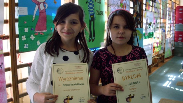 Sukces w Wojewódzkim Konkursie Plastycznym – 12 maja 2016 r. Uczniowie klas IV – VI naszej szkoły wzięli udział w III Wojewódzkim Konkursie Plastycznym ,,Zakochać się w Rosji”, którego tematem były rosyjskie bajki. Miło nam poinformować, że w w/w konkursie Julia Dębko uczennica kl IV a zajęła I miejsce w kategorii plakat, Kinga Szustakiewicz z kl V a …