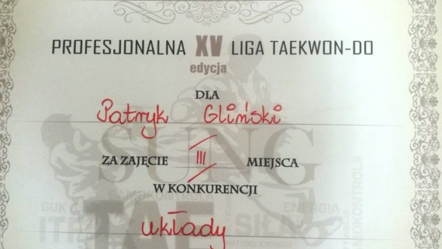 Udane starty w lidze Taekwon-do – 1 grudnia 2018 r. Patryk Gliński, uczeń klasy I b szkoły podstawowej odnosi pierwsze sukcesy w Profesjonalnej Lidze Taekwon-do. Zajął III miejsca w konkurencjach „układy” i „tor sprawnościowy”. Gratulujemy!
