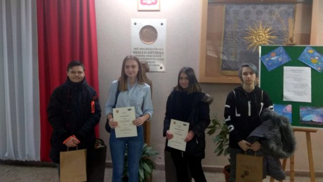 Na powiatowym dyktandzie z języka angielskiego – 19 lutego 2019 r. W dniu 19.02.2019 r. uczniowie naszej szkoły: Patryk Rękawic(klasa VII a), Julia Sadowska (klasaVIII a), Zuzanna Woronowicz (klasa III a gimnazjum) i Justyna Lingo (klasa III b gimnazjum) wzięli udział w IV Powiatowym Dyktandzie z Języka Angielskiego w Liceum Ogólnokształcącym im. M. Kopernika w …