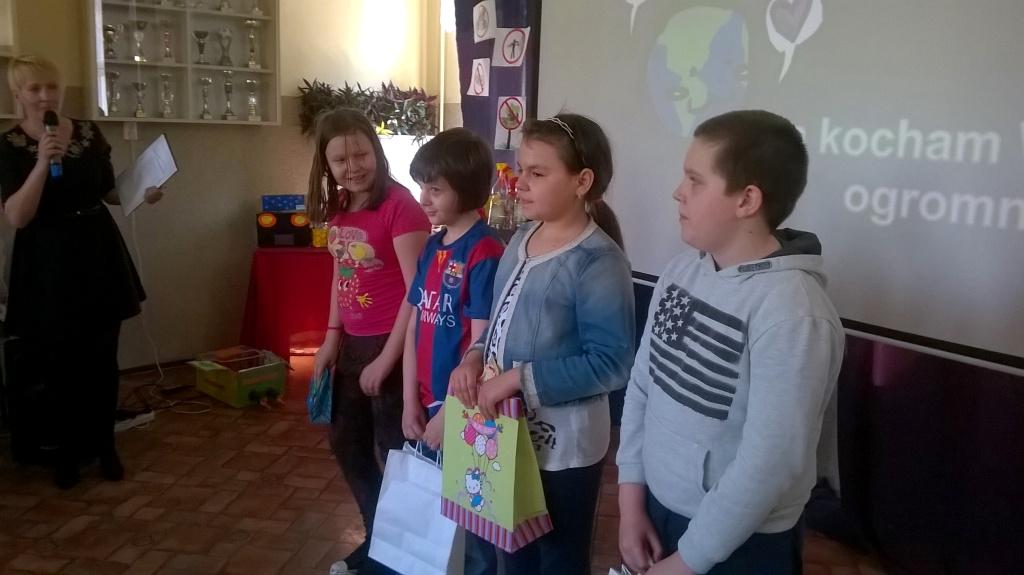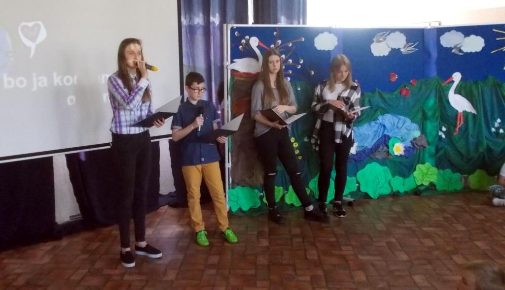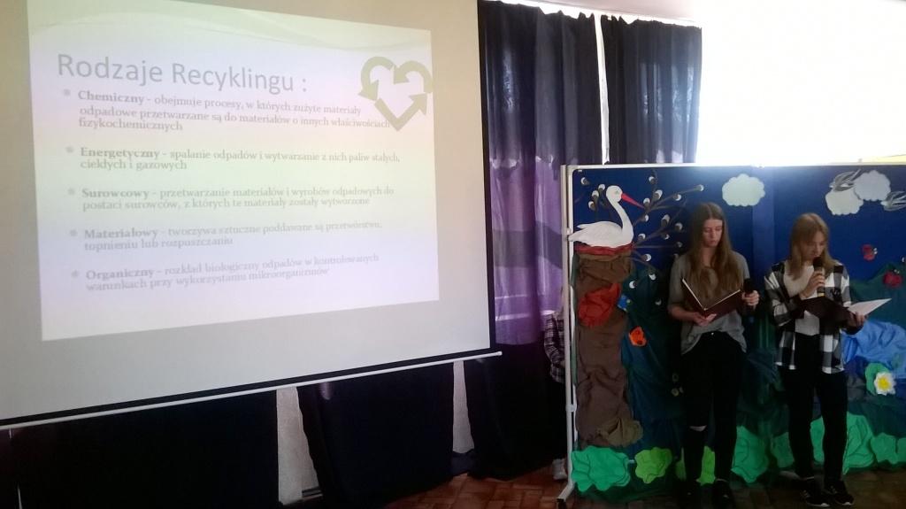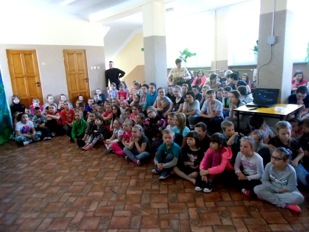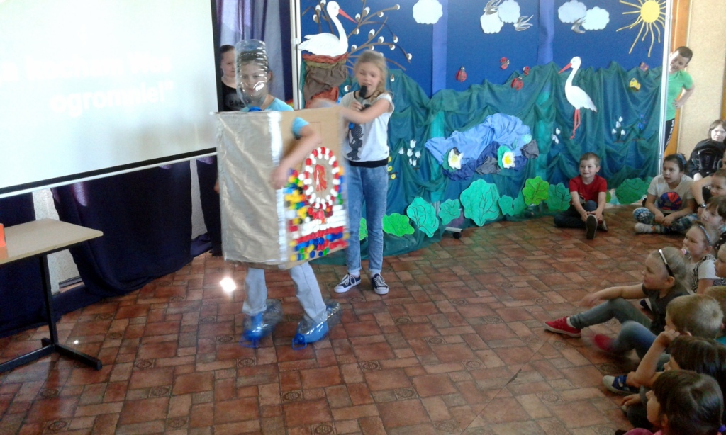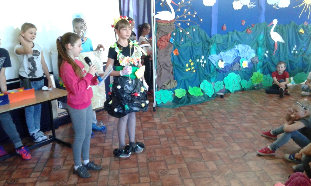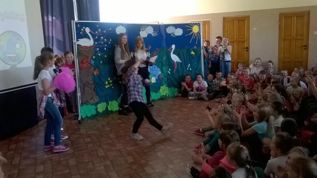 W dniu 6 maja dzieci z klas szkoły podstawowej były na spotkaniu z okazji Dnia Ziemi. Część artystyczną przygotowały  panie Jolanta Steckiewicz i Joanna Chłus wraz z młodzieżą z gimnazjum. Na  program  edukacyjny złożyły się piosenki o tematyce ekologicznej i przyrodniczej, prezentacja multimedialna, konkurs wiedzy o ochronie zasobów natury, prezentacja prac plastyczno-technicznych. Uczniowie klasy piątej przygotowali wspaniały pokaz strojów wykonanych z materiałów wtórnych – wszystkim niepowtarzalnym stylizacjom przyznano nagrody rzeczowe.