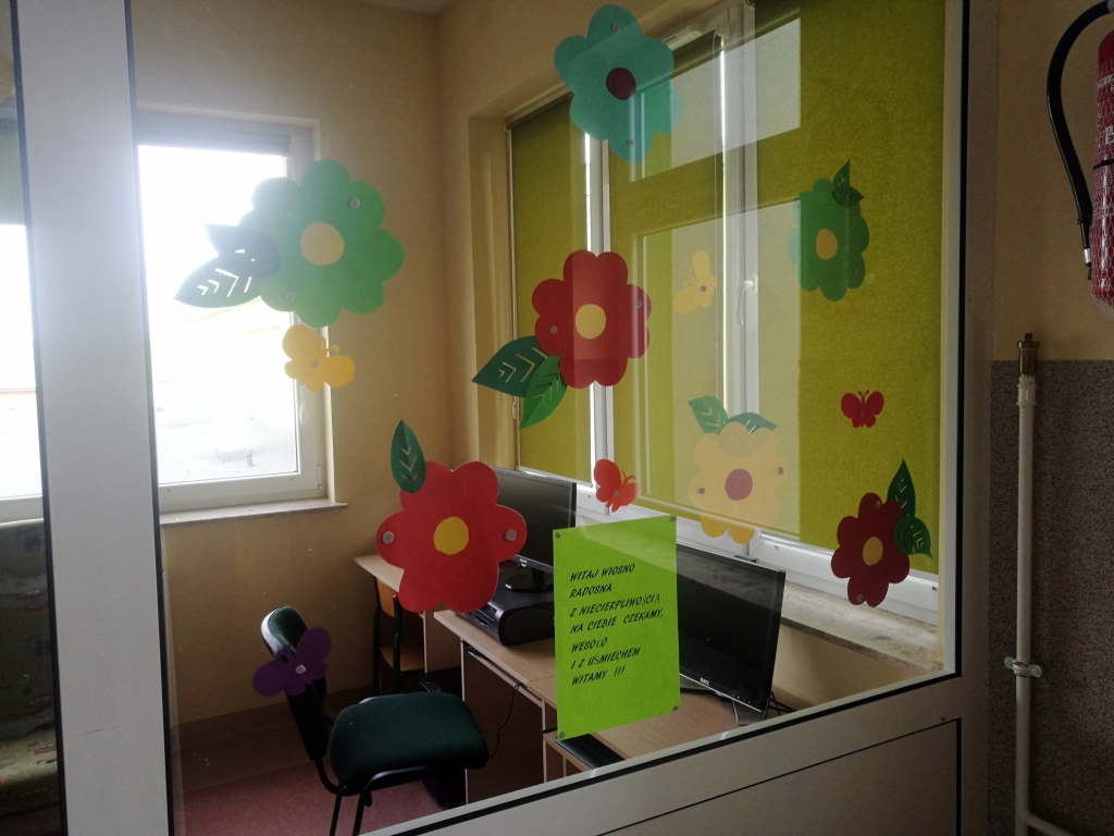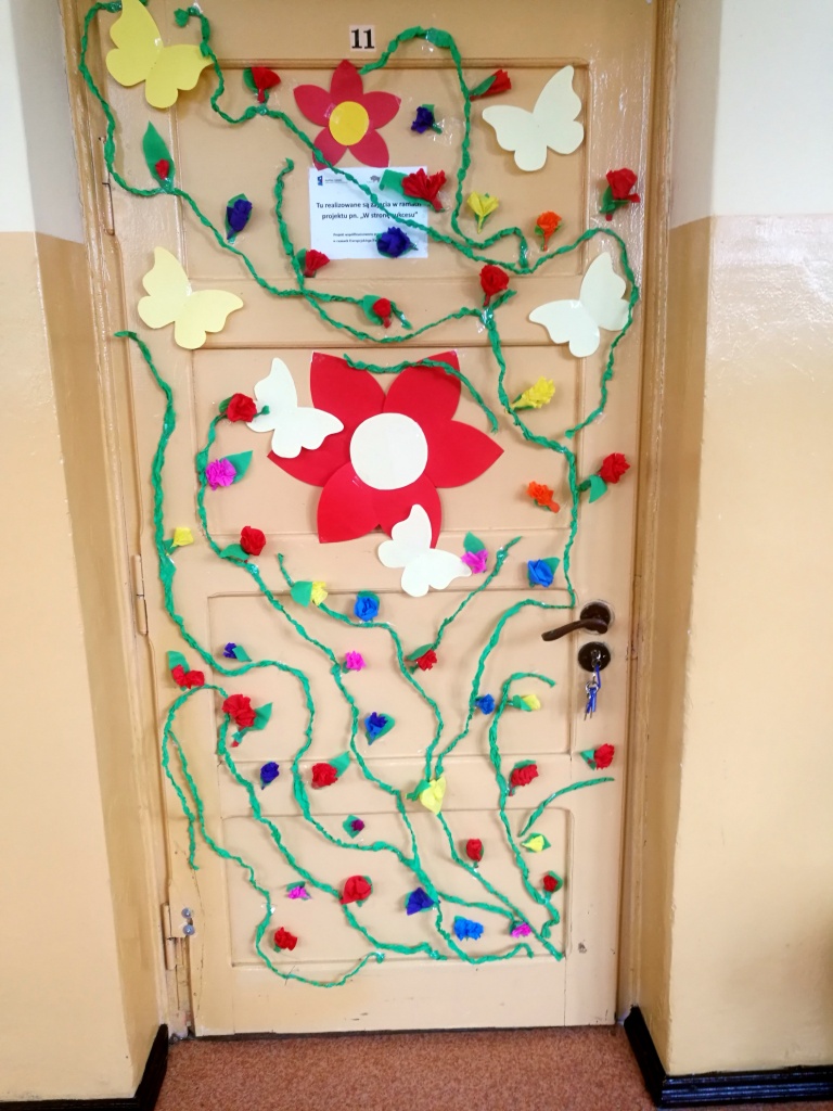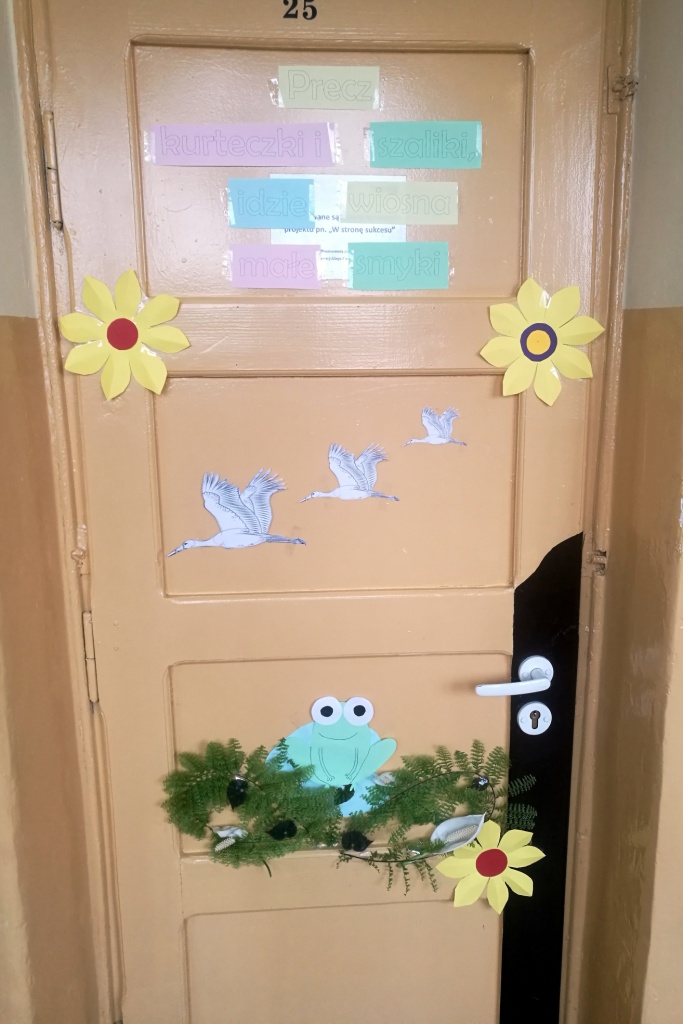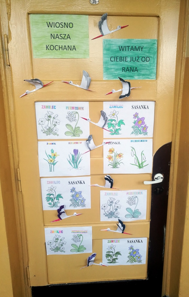 Z okazji powitania wiosny Samorząd Uczniowski przygotował akcję pod hasłem „Drzwi do wiosny”. Zadaniem uczniów było ozdobienie drzwi klasopracowni emblematami związanymi z tą piękną porą roku. Pomysł bardzo przypadł wszystkim do gustu. Na drzwiach pojawiły się kwiaty, bociany, motyle oraz wiosenne hasła. Do szkoły zawitał wiosenny klimat.