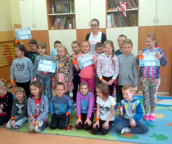 10 X 2017 r. przedstawicielki firmy dotarły do pierwszaków z naszej szkoły. Podczas spotkania dzieci przypomniały zasady ruchu drogowego i bezpiecznego poruszania się po jezdni. Dla wszystkich pierwszaków Celsium przygotowało drobne upominki. Po wysłuchaniu cennych informacji, dzieci otrzymały w prezencie elementy odblaskowe, dzięki którym będą dobrze widoczne na drodze i kolorowe plany lekcji, przypominające o zachowaniu ostrożności na drodze.