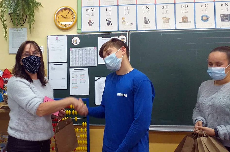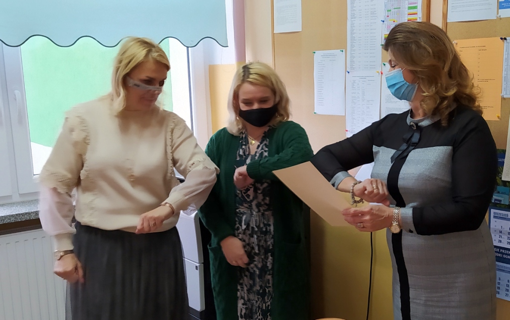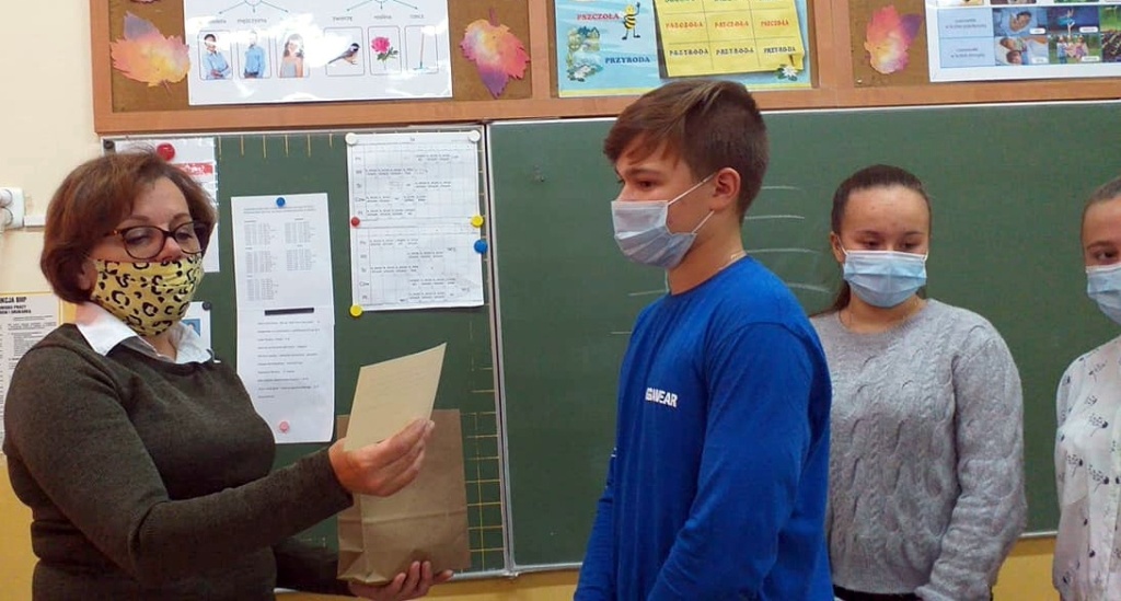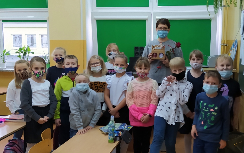 14 października tradycyjnie jest doskonałą okazją, aby podziękować nauczycielom za ich trud włożony w kształcenie, edukowanie i wychowanie młodych ludzi. Tegoroczny Dzień Nauczyciela, z uwagi na sytuację epidemiczną, był obchodzony w naszej szkole w reżimie sanitarnym: bez zaproszonych gości, wspólnej akademii i spotkania przy słodkim poczęstunku. Nie przeszkodziło to jednak w pełni cieszyć się tym radosnym świętem. Część artystyczna, przygotowana przez panią Iwonę Słoma wraz z uczniami należącymi do szkolnego chóru, została nagrana i udostępniona w wersji online. Pani dyrektor indywidualnie wręczała dyplomy wyróżnionym za pracę nauczycielom. Nagrody dyrektora otrzymali: Borowska Barbara, Chłus Joanna, Daszuta Katarzyna, Dąbrowska Jolanta, Ejsmont Beata, Ewa Harasimowicz, Jóźwik Marta, Kowalczuk Zofia, Steckiewicz Jolanta, Szczesiul Danuta, Zalewska Dorota. Samorząd Uczniowski przygotował symboliczne upominki, życzenia oraz tort. Nauczyciele otrzymali słodkości od wychowanków.