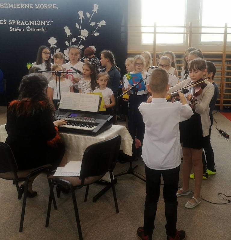 11 października w naszej szkole odbyła się uroczysta akademia z okazji Dnia Nauczyciela. Na sali gimnastycznej zebrali się nauczyciele, uczniowie, pracownicy administracyjni szkoły oraz rodzice. Gościem specjalnym była przewodnicząca Rady Rodziców pani Izabela Parchanowicz. Swoją obecnością zaszczycił nas emerytowany nauczyciel pan Stanisław Mitrosz. Montaż słowno-muzyczny przygotowała pani Anna Tokarzewska z uczniami klas IV – VIII. Wystąpił też zespół muzyczny prowadzony przez panią Ewę Dębko. W solowych występach zaprezentowały się uczennice Oliwia Inatowicz, Natalia Tołłoczko, Natalia Białobłocka. Wiersze i piosenki młodych wykonawców podkreślały znaczenie edukacji oraz pracy pedagogów i jednocześnie stanowiły piękny ukłon dla tych, którzy na co dzień wkładają niemały trud w proces nauki i wychowania. To święto jest też okazją do nagrodzenia wyróżniających się nauczycieli. Nagrody Burmistrza Sokółki otrzymali Dorota Zalewska i Zofia Kowalczuk. Nagrodę Dyrektora szkoły wręczono Marii Zaulicznej, Jolancie Paruk, Andrzejowi Ignatowiczowi, Ewie Harasimowicz, Małgorzacie Chociej, Barbarze Chancewicz, Alinie Jakimiec, Dorocie Kamińskiej i Reginie Sawickiej. miła niespodzianke przygotował samorzad uczniowski czestujac wszystkich nauczycieli domowymi paczkami