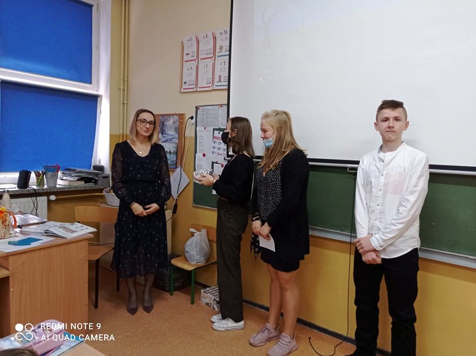 14 października tradycyjnie obchodzony jest Dzień Edukacji Narodowej, nazywany potocznie Dniem Nauczyciela. To wyjątkowa okazja do tego, by pedagogom i wychowawcom podziękować za ich pracę, poświęcenie i trud wkładany w kształcenie młodego pokolenia. W tym roku świętowaliśmy nieco inaczej, ze względu obostrzenia sanitarne. Nie było wspólnego spotkania na akademii, występ artystyczny został nagrany i udostępniony do indywidualnego obejrzenia w klasach w wersji online. Część literacką przygotowała pani Dorota Zalewska wraz z uczniami. O oprawę muzyczną zadbał zespół prowadzony przez pana Marcina Muchę. Pokaz taneczny przygotowały panie Barbara Chancewicz i Dorota Kamińska wraz z dziewczynkami z klas pierwszych i drugiej a. Filmik z występu nagrał i zmontował pan Radosław Kacunel. Miłym akcentem było złożenie życzeń pracownikom szkoły przez przedstawicieli uczniów i wręczenie „antystresowych tik-taków”. Rada rodziców zaś zaprosiła nauczycieli na słodki poczęstunek. Niektórzy nauczyciele naszej szkoły zostali uhonorowani Nagrodą Dyrektora szkoły oraz Nagrodą Burmistrza.