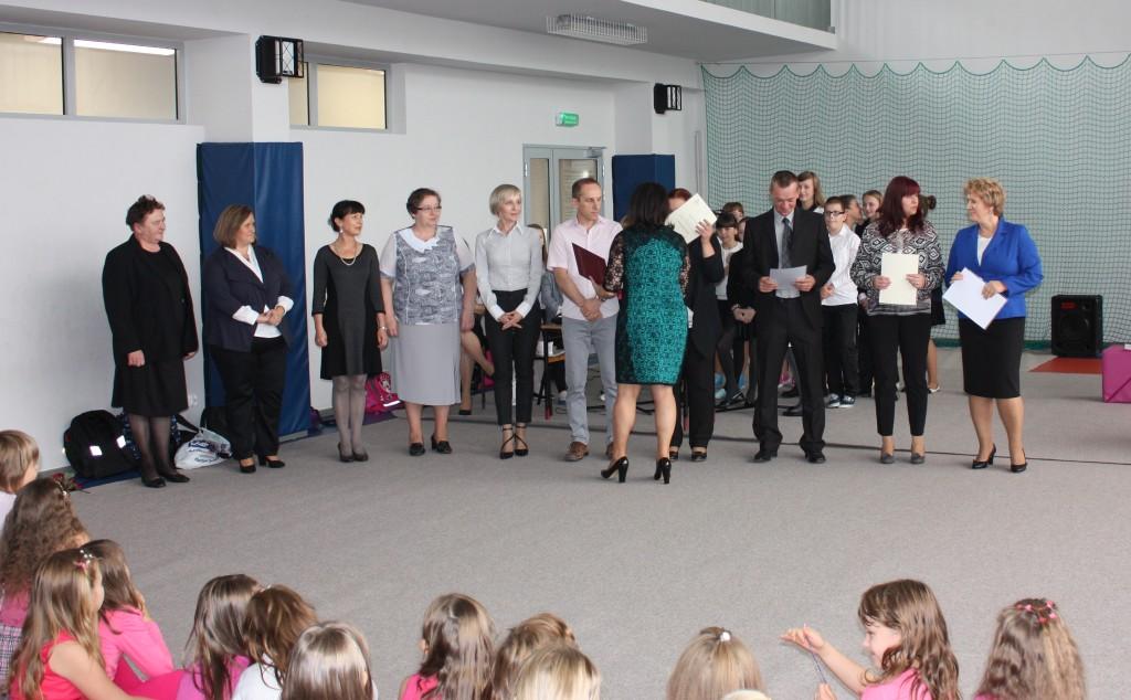 W dniu dzisiejszym w naszej szkole odbyła się uroczysta akademia z okazji Dnia Nauczyciela. Przybyło na nią wielu gości: ks. Józef Kuczyński, emerytowani nauczyciele- wieloletni dyrektor szkoły pan Stanisław Omachel, pani Krystyna Czołpińska, pan Andrzej Wysocki, przedstawiciele Rady Rodziców: pan Jerzy Awdziej i pani Joanna Normantowicz, rodzice, pracownicy szkoły, nauczyciele i społeczność uczniowska. Część artystyczna składała się z kilku części. Pani Katarzyna Daszuta i jej podopieczni z Koła Teatralnego z klasy czwartej i piątej przygotowali inscenizację pt. „Śpiąca królewna”. Dziewczynki z zespołu tanecznego „Rytm”, prowadzonego przez panie Barbarę Chancewicz i Dorotę Kamińską, zaprezentowały się w brawurowym, pełnym energii i radości tańcu „Barbie girl”. Piosenki w wykonaniu Zespołu Muzycznego, prowadzonego przez panią Ewę Dębko, przeplatały się z solowymi występami Julii Dębko, Mateusza Zalewskiego, który śpiewał i akompaniował sobie na pianinie oraz Julii Borowskiej. Święto Edukacji to okazja do nagrodzenia nauczycieli oraz pracowników administracji i obsługi za ich trud i pracę. W tym roku Nagroda Dyrektora ZSO powędrowała do rąk pani Marii Zaulicznej, Małgorzaty Zieziula, Ewy Harasimowicz, Anny Tokarzewskiej, Moniki Klim, Reginy Sawickiej, Jolanty Dąbrowskiej, Radosława Kacunela, Sławomira Rochalskiego i pani Bernadety Bielawskiej. Nagrodę Burmistrza otrzymały pani Joanna Chłus i pani Katarzyna Daszuta, zaś medale KEN przyznano p. Joannie Chłus, p. Jolancie Steckiewicz i p. Sławomirowi Rochalskiemu. Warto podkreślić, że w naszej szkole przez cały dzień panowała niezwykle miła atmosfera, a uroczysty nastrój podkreślały galowe stroje uczniów. Do wszystkich życzeń, jakie otrzymali dziś pedagodzy, dołączamy jeszcze te: