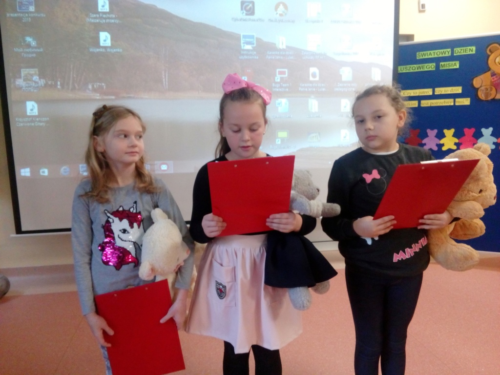 25 listopada to dzień, kiedy na świecie obchodzi się urodziny pluszowego misia- jednej z najpopularniejszych zabawek w Europie już od XIX wieku. Ta pluszowa przytulanka nieodłącznie kojarzona jest z beztroskim czasem dzieciństwa, kiedy to była występowała w roli kompana zabaw, kumpla do podróży i zasypiania oraz powiernika sekretów. Misiaczki towarzyszą dzieciom zarówno w chwilach radości jak i smutku, są jak najlepszy przyjaciel, a o urodzinach przyjaciela nie wolno zapomnieć. Z tego też powodu w ostatni piątek w Szkole Podstawowej nr 3 odbyło się Święto Pluszowego Niedźwiadka. W tym dniu wszystkie dzieci przyszły do szkoły ze swoimi ukochanymi zabawkami. Spotkanie rozpoczęło się od misiowego powitania i kilku tanecznych pląsów. Następnie uczniowie z klasy III b opowiedzieli o historii tej niezwykłej zabawki, która ma już ponad 100 lat oraz przedstawili najbardziej znanych bajkowych i filmowych bohaterów: Kubusia Puchatka, Colargola, Usztaka, Padddingtona i Gumisia. Dzieci odwiedziły też wystawkę książek o niedźwiadkach przygotowanych przez panią Reginę Sawicką w bibliotece oraz poznały historię niedźwiedzia Wojtka, adoptowanego przez żołnierzy gen. Władysława Andersa. Niedźwiedź ten brał udział w bitwie o Monte Cassino, a w jednostce nadano mu stopień kaprala. Wszystkie klasy przygotowały swoim zabawkom prezenty: klasa pierwsza misiową kołysankę, klasa druga wierszyk, zaś klasy trzecie piosenkę i zagadki. Uroczystość była okazją do zakończenia i podsumowania szkolnej akcji Tydzień Czytania Bajek i Baśni, w których jak wiadomo misiaczki jakże często są głównymi bohaterami. Na koniec na dzieci czekała miła niespodzianka: degustacja największego przysmaku Kubusia Puchatka i nie tylko – miodku z kukurydzianymi chrupkami. Uroczystość przygotowali nauczyciele edukacji wczesnoszkolnej, świetlicy i biblioteki.