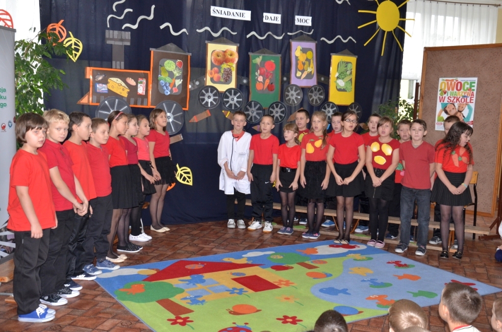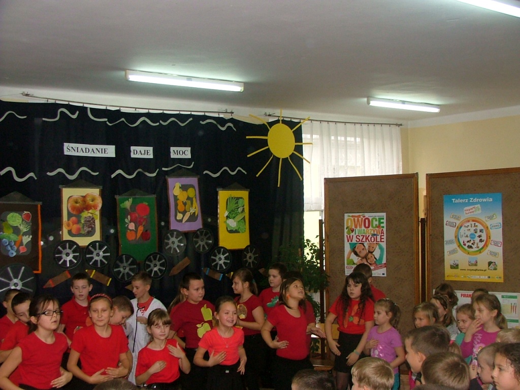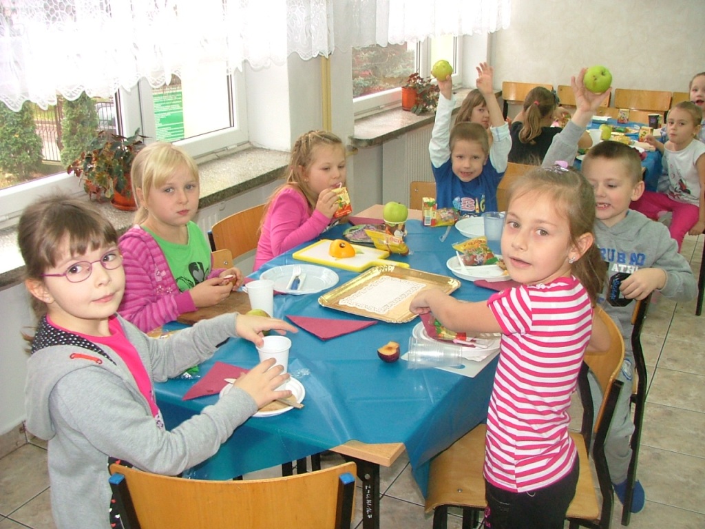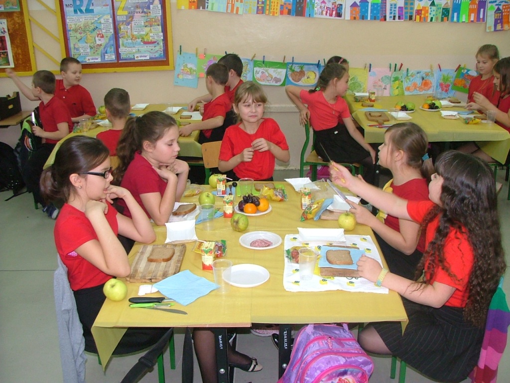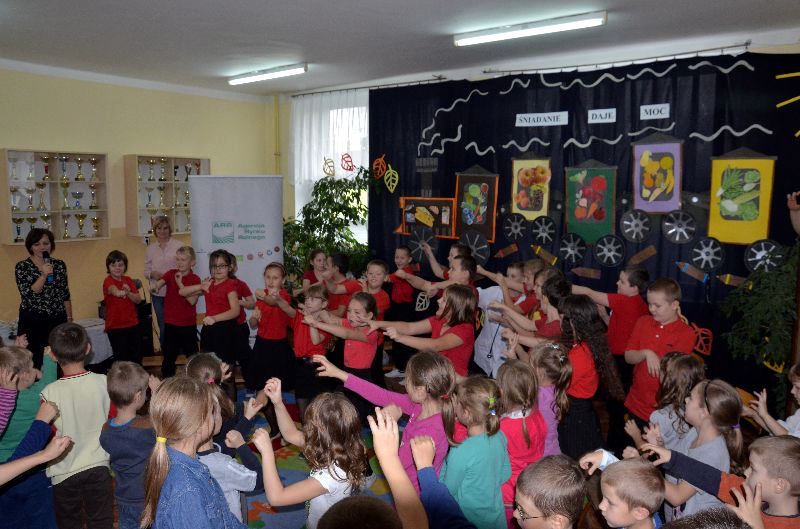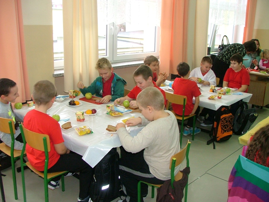 Dzieci ze Szkoły Podstawowej nr 3 w Sokółce od kilku lat biorą udział w programie edukacyjnym „Owoce i warzywa w szkole”, realizowanym przy współpracy z Agencją Rynku Rolnego, oddział w Białymstoku, oraz w programie „Szklanka mleka”. Placówka przyłącza się też do obchodzonego 8 listopada Dnia Zdrowego Śniadania – działania w ramach strategii Partnerstwo dla Zdrowia. Celem tych poczynań jest długoterminowa zmiana nawyków żywieniowych poprzez zwiększenie udziału produktów bogatych w witaminy, zdrowych i niezbędnych do prawidłowego rozwoju młodych organizmów. Dziś, kiedy wszechobecna jest żywność wysoko przetworzona, szybkie i niezdrowe przekąski, gdy na każdym kroku kuszą słodycze, temat wydaje się być trafiony w dziesiątkę. Dzisiejsze spotkanie, łączące treści wszystkich realizowanych programów prozdrowotnych, miało szczególnie interesujący przebieg. Trzecioklasiści pod okiem wychowawczyni, p. Barbary Tolko przygotowali inscenizację „O warzywach, owocach i słodyczy złych mocach”. Szkolna pielęgniarka wygłosiła pogadankę o racjonalnym odżywianiu, piramidzie zdrowia oraz o tym, jak dbać o kondycję fizyczną i sprawność umysłu. Agencja Rynku Rolnego w Białymstoku, którą reprezentował pan Przemysław Jarecki, przygotowała miłą niespodziankę: produkty niezbędne do przygotowania zdrowego śniadania. Dzieci ten najważniejszy posiłek dnia przygotowały wspólnie z zaproszonymi na spotkanie rodzicami. Uroczystość przygotowali nauczyciele edukacji wczesnoszkolnej i świetlicy ZSO na Osiedlu Zielonym.