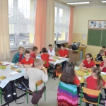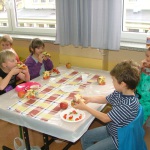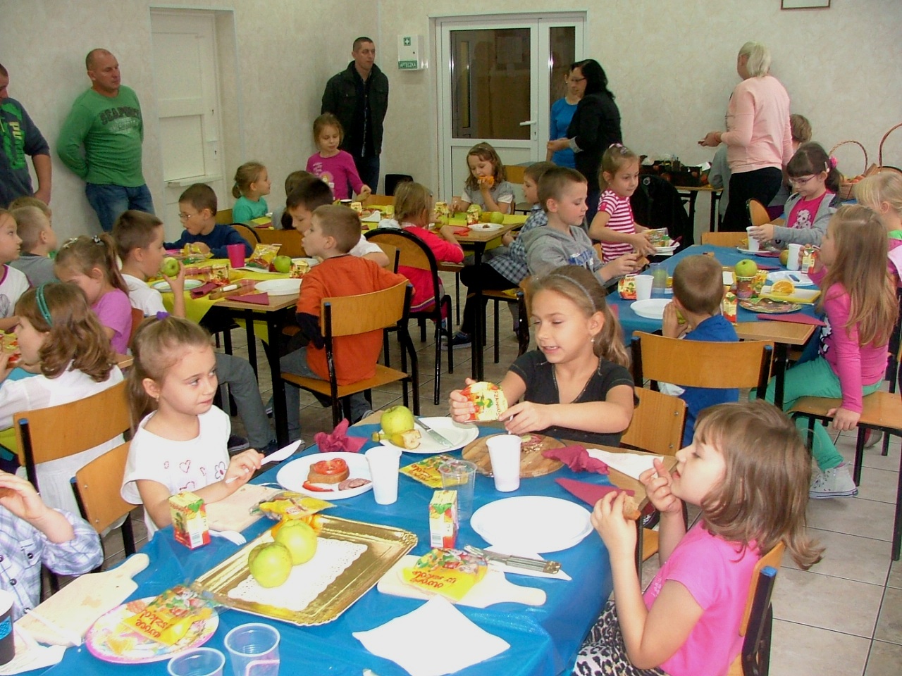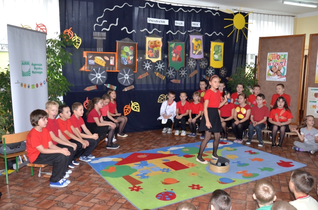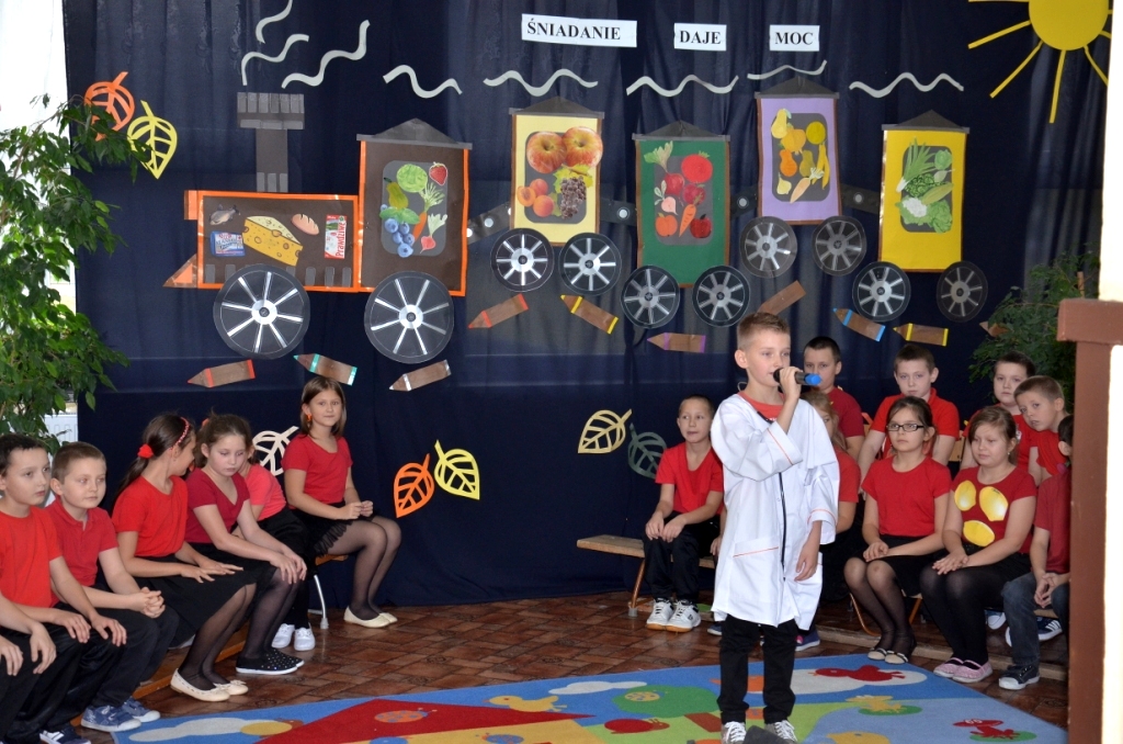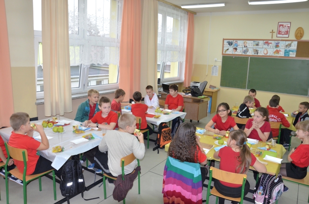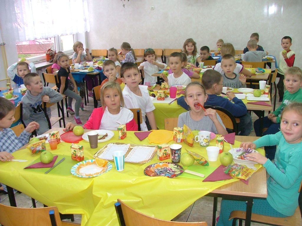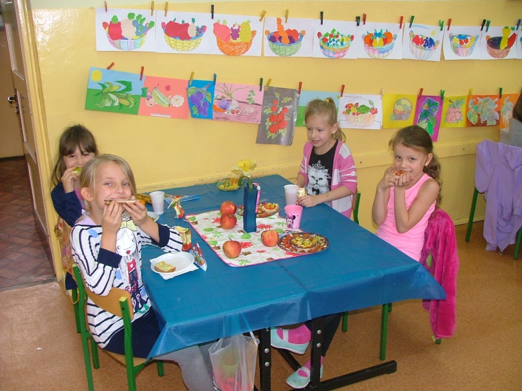Dzieci ze Szkoły Podstawowej nr 3 w Sokółce od kilku lat biorą udział w programie edukacyjnym „Owoce i warzywa w szkole”, realizowanym przy współpracy z Agencją Rynku Rolnego, oddział w Białymstoku, oraz w programie „Szklanka mleka”. Placówka przyłącza się też do obchodzonego 8 listopada Dnia Zdrowego Śniadania – działania w ramach strategii Partnerstwo dla Zdrowia. Celem tych poczynań jest długoterminowa zmiana nawyków żywieniowych poprzez zwiększenie udziału produktów bogatych w witaminy, zdrowych i niezbędnych do prawidłowego rozwoju młodych organizmów. Dziś, kiedy wszechobecna jest żywność wysoko przetworzona, szybkie i niezdrowe przekąski, gdy na każdym kroku kuszą słodycze, temat wydaje się być trafiony w dziesiątkę. Dzisiejsze spotkanie, łączące treści wszystkich realizowanych programów prozdrowotnych, miało szczególnie interesujący przebieg. Trzecioklasiści pod okiem wychowawczyni, p. Barbary Tolko przygotowali inscenizację „O warzywach, owocach i słodyczy złych mocach”. Szkolna pielęgniarka wygłosiła pogadankę o racjonalnym odżywianiu, piramidzie zdrowia oraz o tym, jak dbać o kondycję fizyczną i sprawność umysłu. Agencja Rynku Rolnego w Białymstoku, którą reprezentował pan Przemysław Jarecki, przygotowała miłą niespodziankę: produkty niezbędne do przygotowania zdrowego śniadania. Dzieci ten najważniejszy posiłek dnia przygotowały wspólnie z zaproszonymi na spotkanie rodzicami. Uroczystość przygotowali nauczyciele edukacji wczesnoszkolnej i świetlicy ZSO na Osiedlu Zielonym.