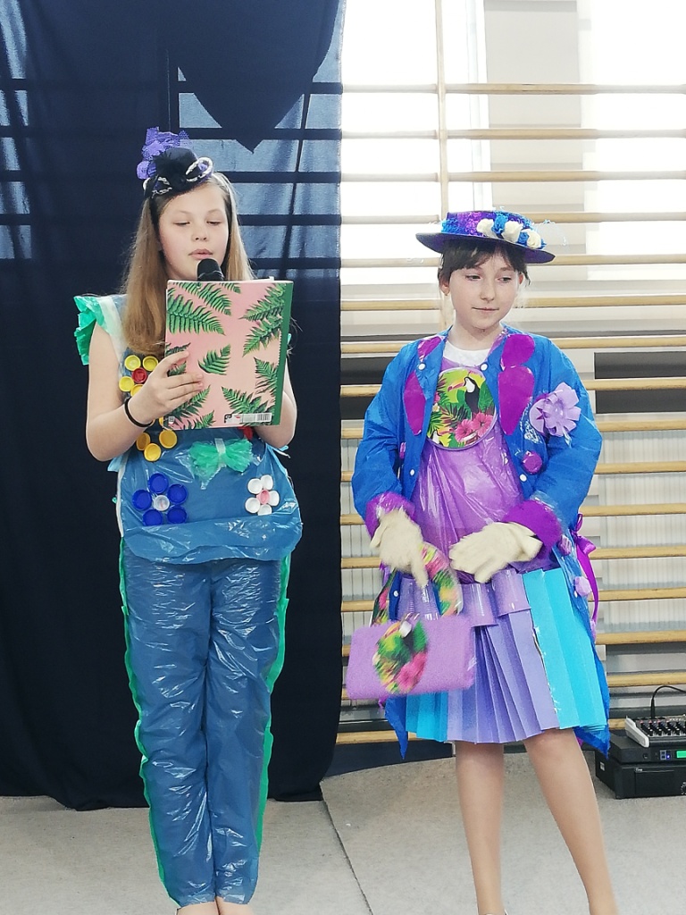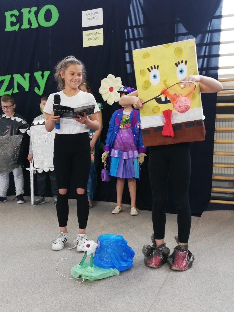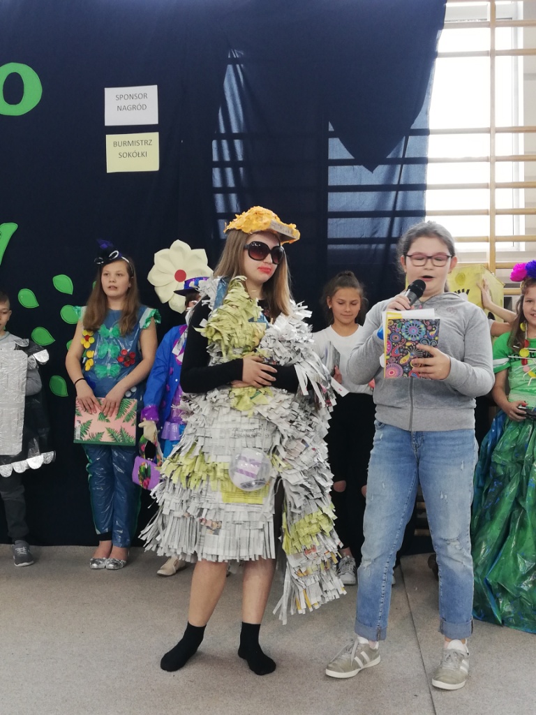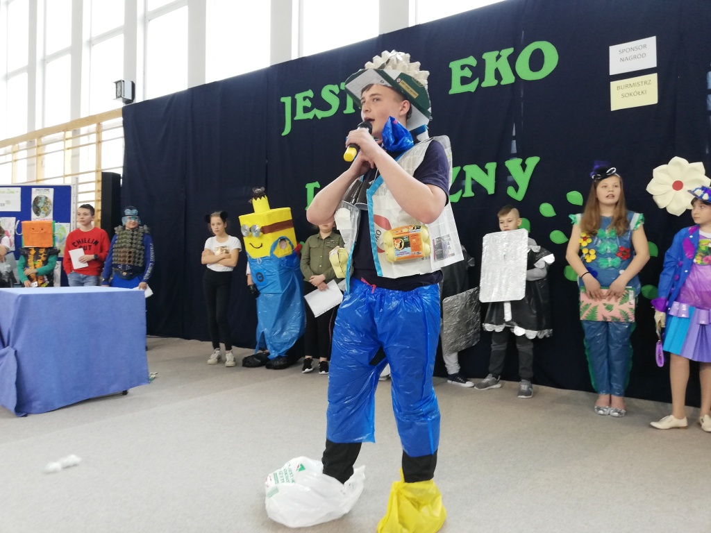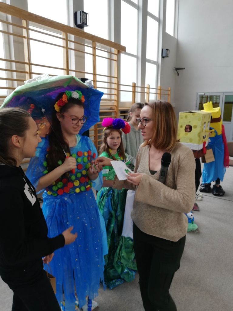 Odbył się również Konkurs na Najzabawniejszy Strój Wykonany z Surowców Wtórnych, w którym wzięli udział uczniowie z klas 5-8 SP. Wykonane przez nich prace cieszyły się ogromnym zainteresowaniem i podziwem publiczności. Prezentacja strojów polegała nie tylko na ich pokazaniu, ale też omawiane były elementy wykonania. Uczestnicy przedstawiali nazwę stroju i często zabawne historyjki z nim związane.