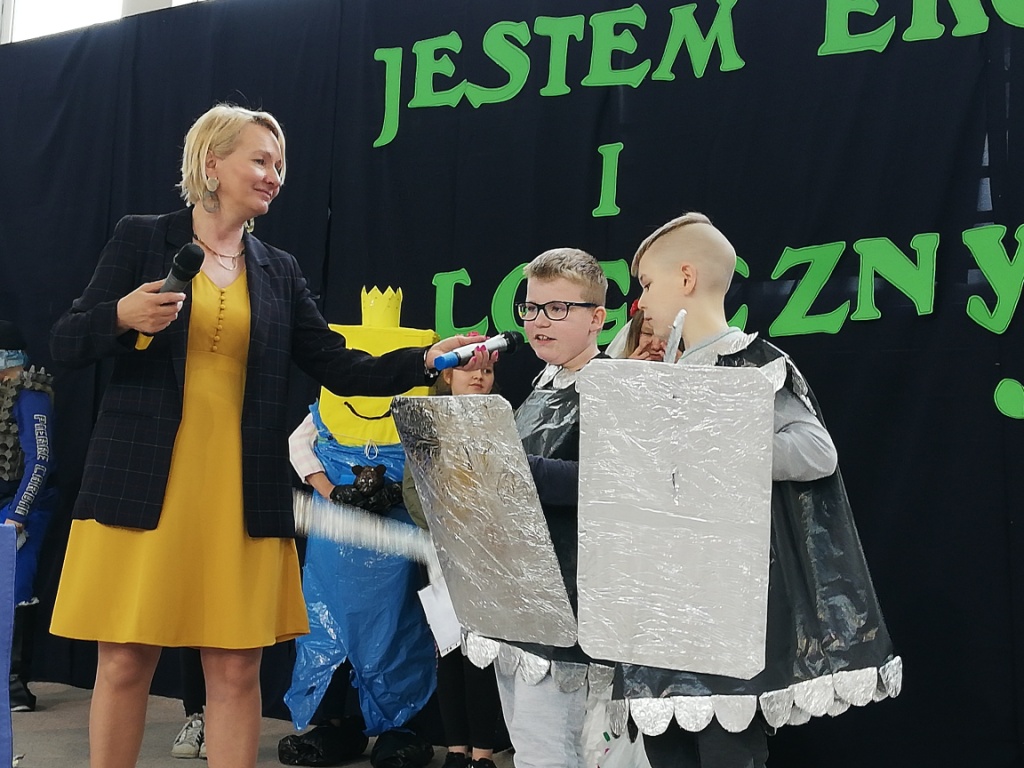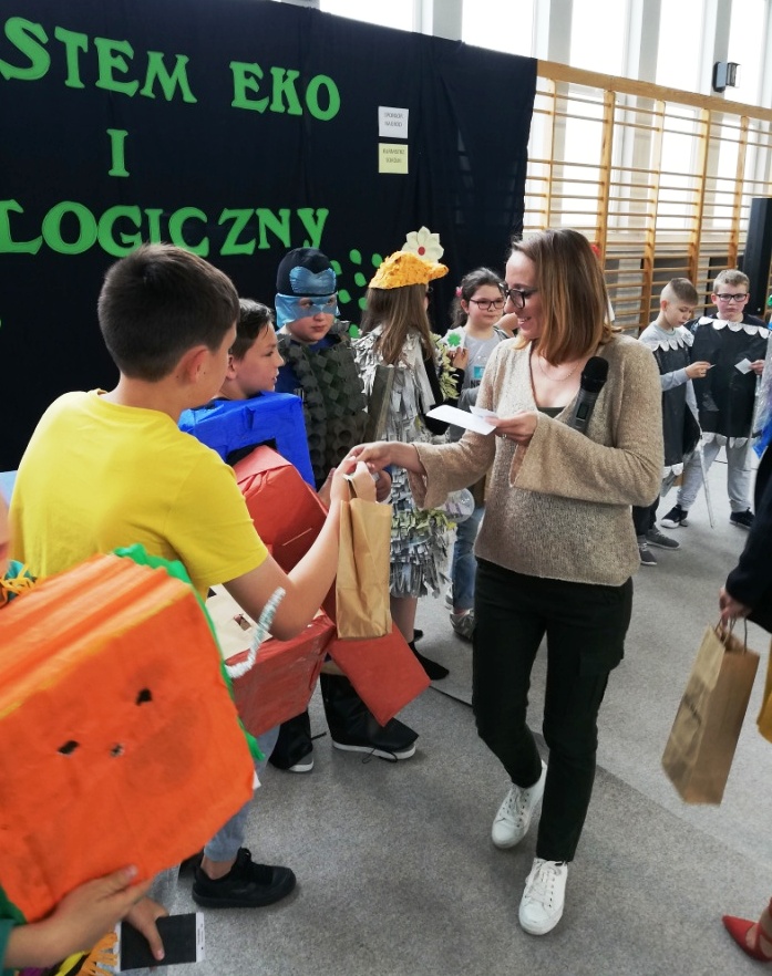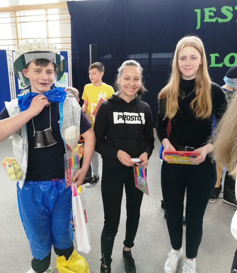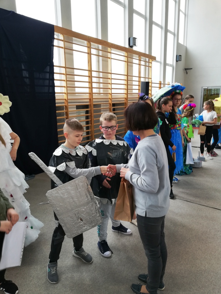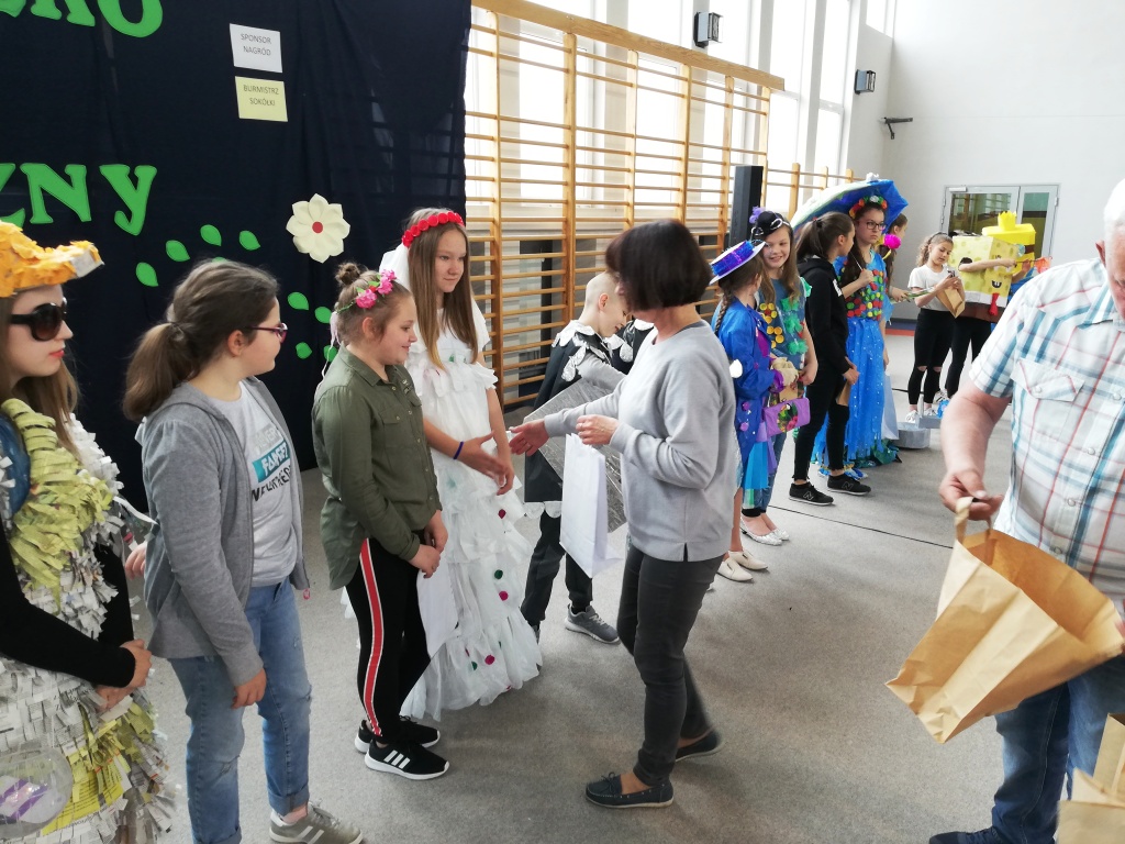 Odbył się również Konkurs na Najzabawniejszy Strój Wykonany z Surowców Wtórnych, w którym wzięli udział uczniowie z klas 5-8 SP. Wykonane przez nich prace cieszyły się ogromnym zainteresowaniem i podziwem publiczności. Prezentacja strojów polegała nie tylko na ich pokazaniu, ale też omawiane były elementy wykonania. Uczestnicy przedstawiali nazwę stroju i często zabawne historyjki z nim związane.