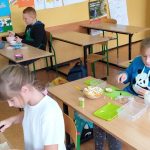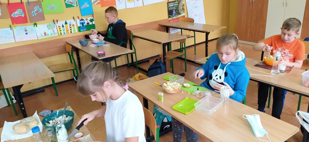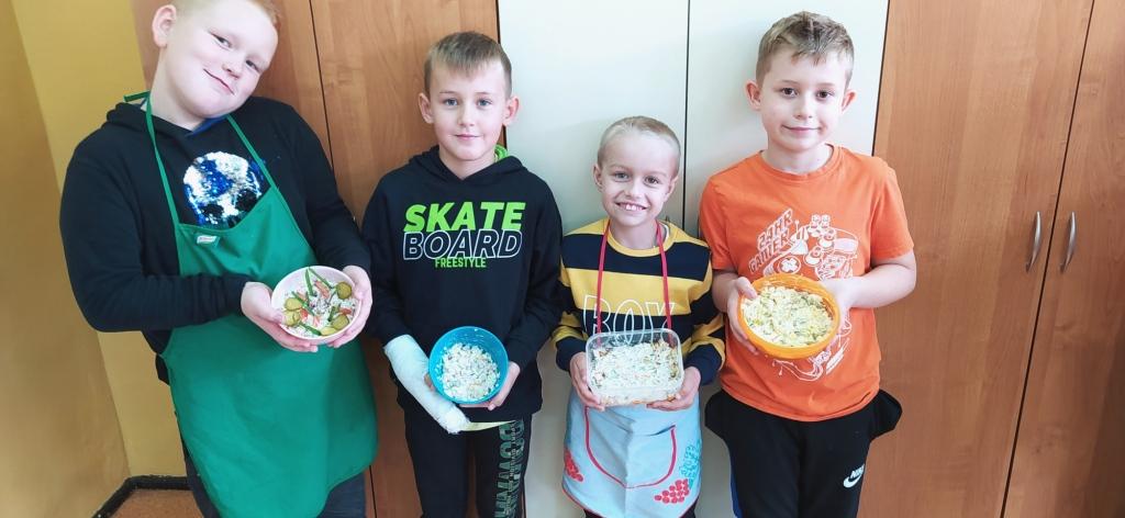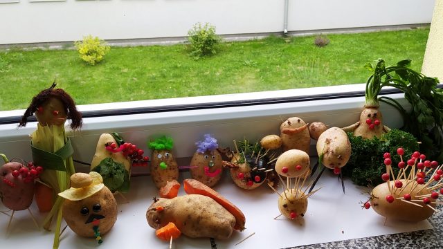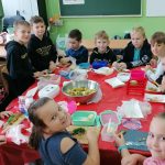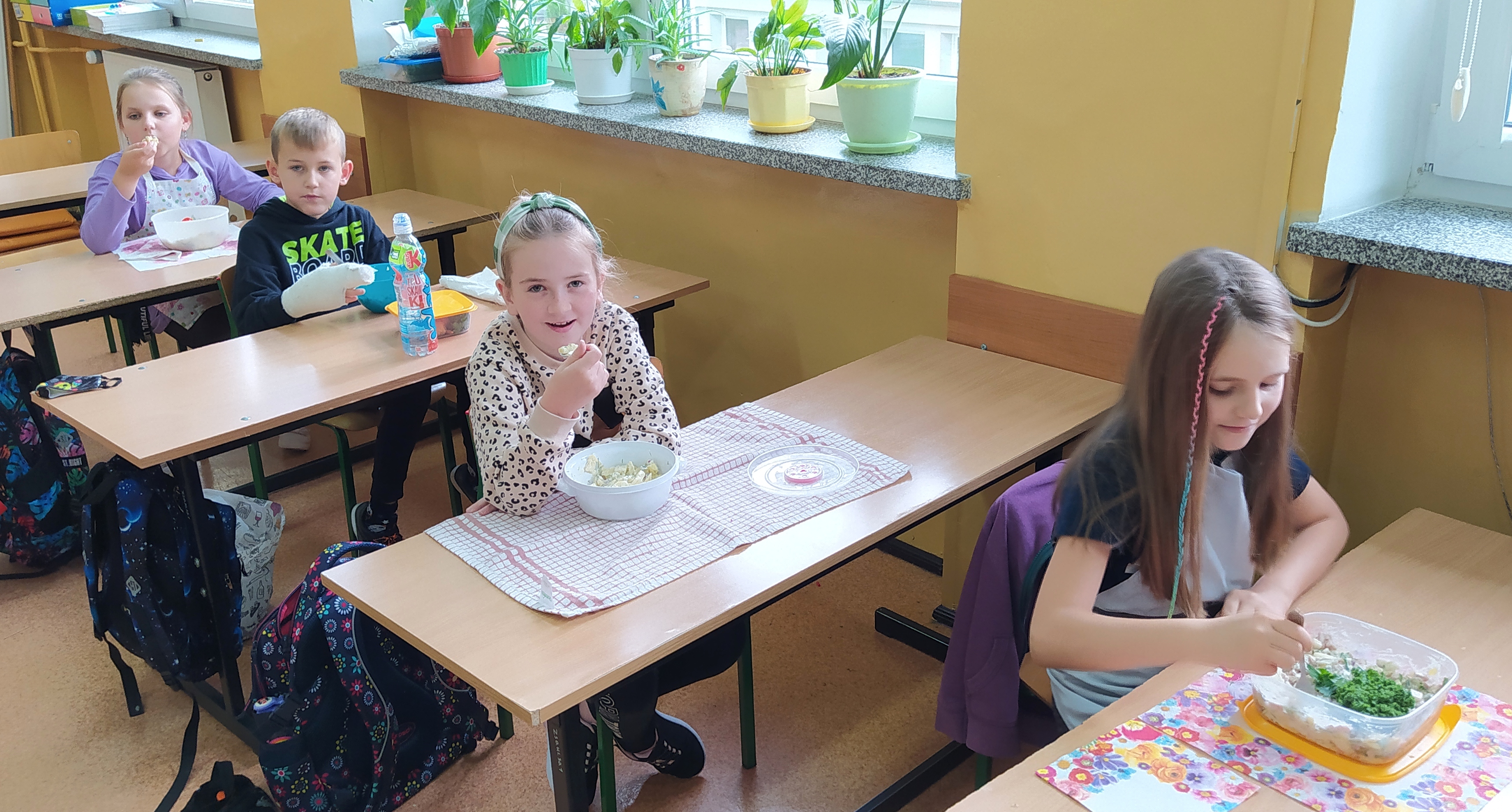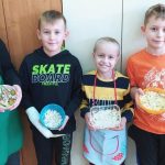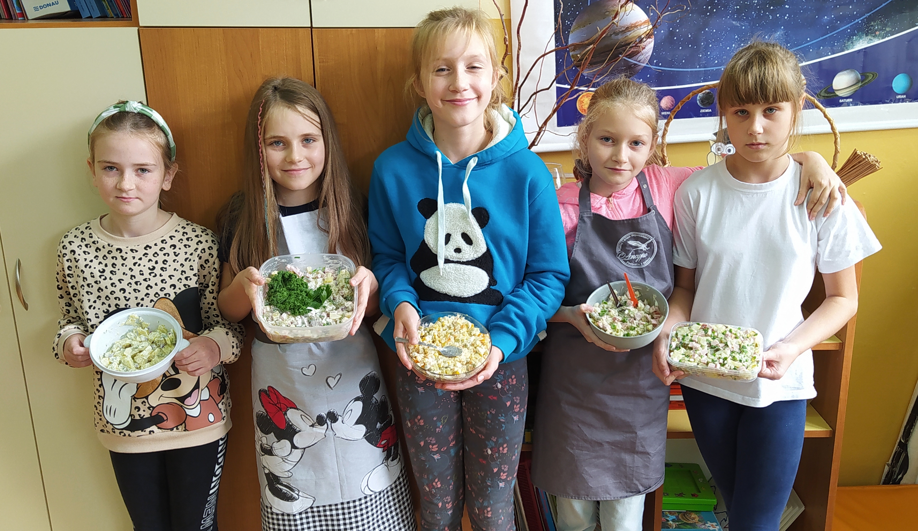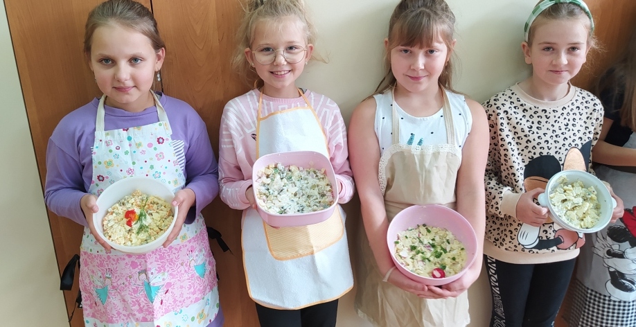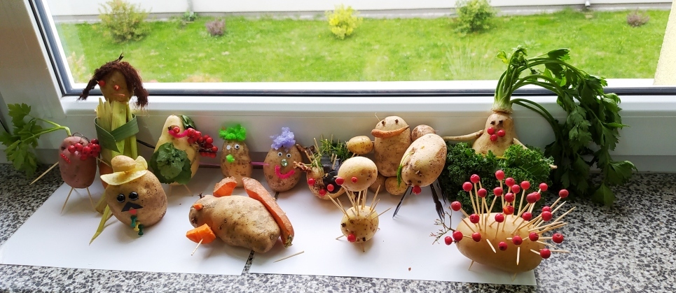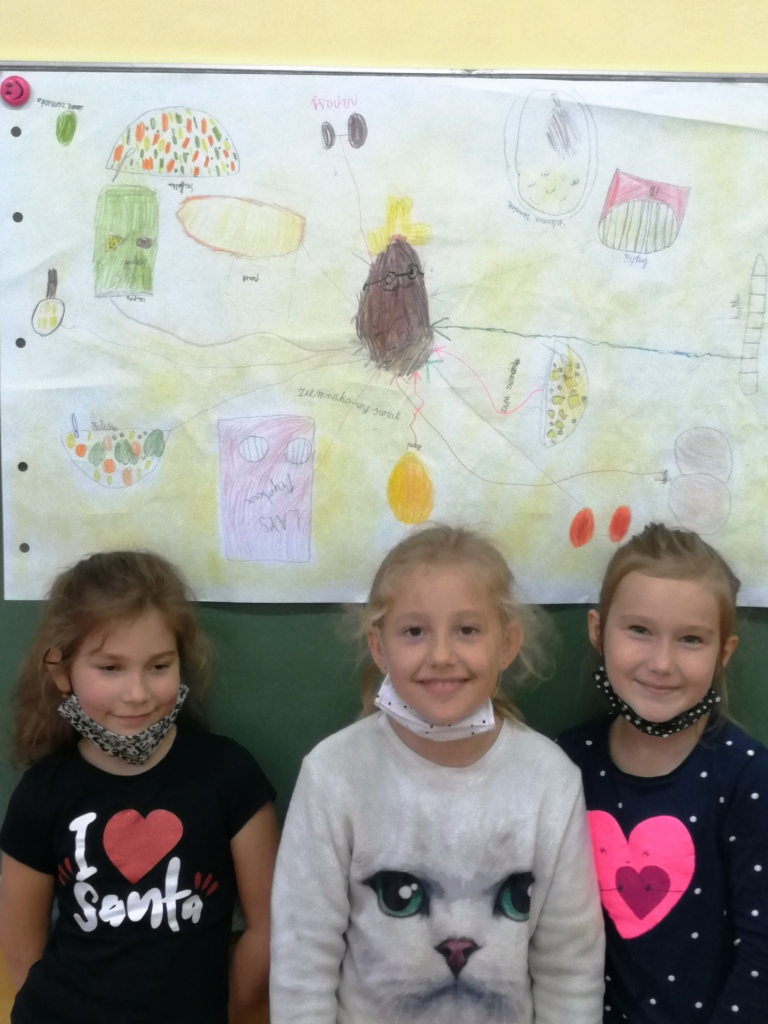 Jesień to czas zbiorów owoców i warzyw, w tym tak popularnych i królujących w naszej kuchni jak ziemniaki, zwane także kartoflami, pyrami lub grulami. Z tej okazji uczniowie młodszych klas naszej szkoły tradycyjnie obchodzili Dzień Ziemniaka. Niestety, ze względu na sytuację epidemiologiczną tegoroczne święto miało nieco inny charakter. Nie było wspólnych zabaw i gier oraz pieczenia ziemniaków, ale atrakcji i tak nie zabrakło. Pierwszaki wysłuchały bajki o ziemniaku i obejrzały filmik edukacyjny, po czym wykonały piękne kompozycje z ziemniaczanych stempelków. Kolorowały też rysunek przedstawiający budowę tej rośliny, poznając przy tym nowe słowa takie jak bulwa i łęty. Najfajniejszym momentem była degustacja potraw z ziemniaków, przygotowanych w domu i stanowiących drugie śniadanie w zastępstwie kanapek. Frytki, placki, kopytka, chipsy, smażone talarki smakowały naprawdę wyśmienicie. Klasy drugie przygotowały plakat mówiący o tym co można zrobić z ziemniaków. Trzeciaki własnoręcznie wykonały sałatkę ziemniaczaną i przygotowały wystawkę z ziemniaczanymi stworkami.