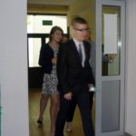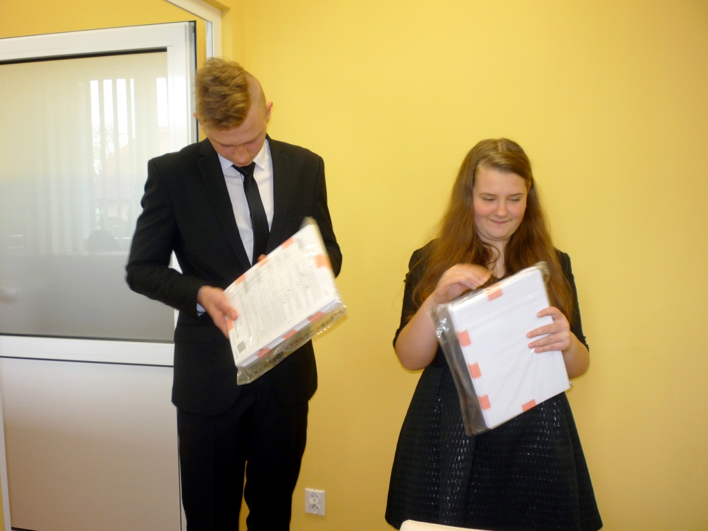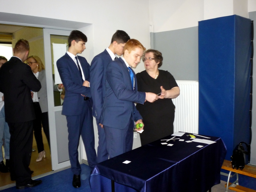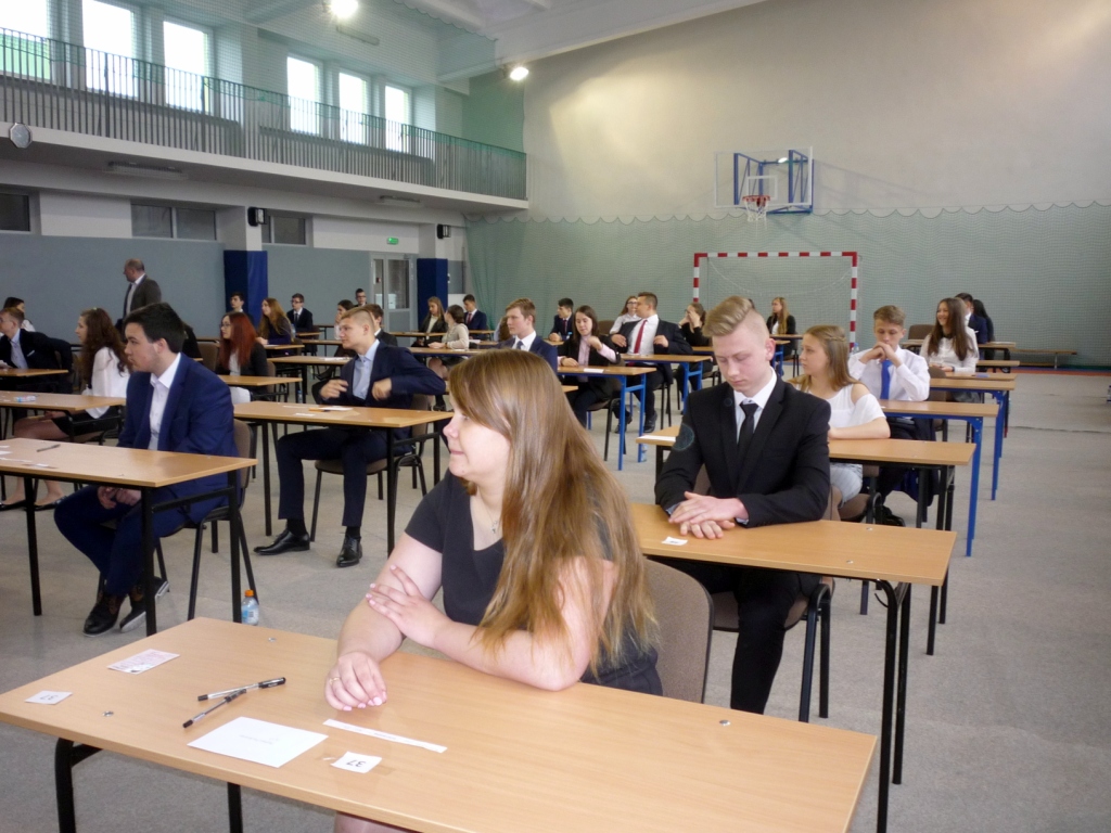 Minął pierwszy dzień egzaminu gimnazjalnego. Zgromadzeni przed salą egzaminacyjną uczniowie klas III, zgodnie z regulaminem, wchodzili według listy i losowali numer ławki, przy której będą pracować. Wychowawczyni IIIb pani Zalewska obdarzyła każdego ucznia słowem wsparcia i „czymś” na szczęście. Po zajęciu miejsc jest jeszcze chwila zanim na ławkach pojawią się testy. Przed każdą częścią egzaminu przedstawiciele obu klas wraz z przewodniczącą komisji egzaminacyjnej udają się do pani dyrektor. Tu sprawdzają nienaruszalność kopert, przeliczają ilość egzemplarzy.