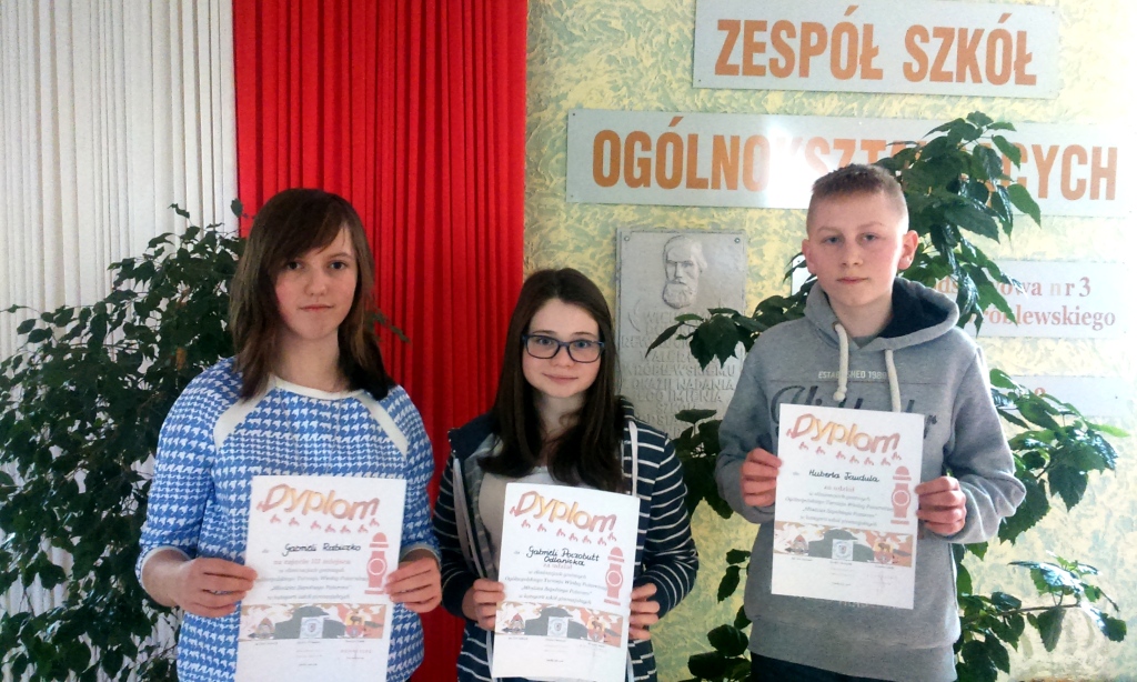 18 lutego 2016 r. w Gimnazjum nr 1 w Sokółce odbyły się eliminacje gminne Ogólnopolskiego Turnieju Wiedzy Pożarniczej p.h. „Młodzież zapobiega pożarom”. W konkursie gminnym wzięło udział 29 uczniów szkół podstawowych i gimnazjalnych. Uczestnicy konkursu rozwiązywali test składający się z 20 pytań. Naszą szkołę reprezentowaly uczennice Gimnazjum Gabriela Rabiczko i Gabriela Poczobutt Odlanicka oraz Hubert Taudul.
