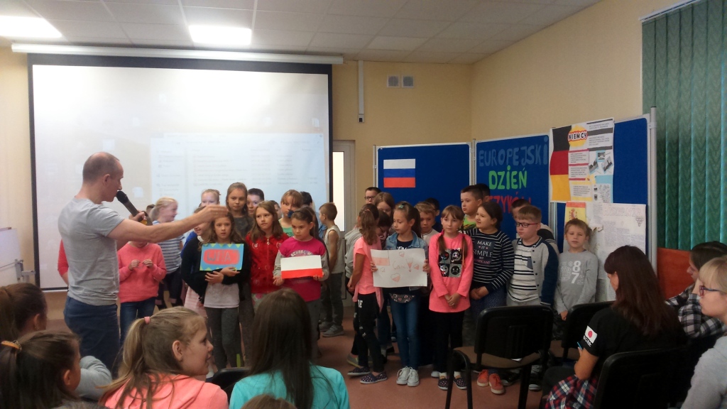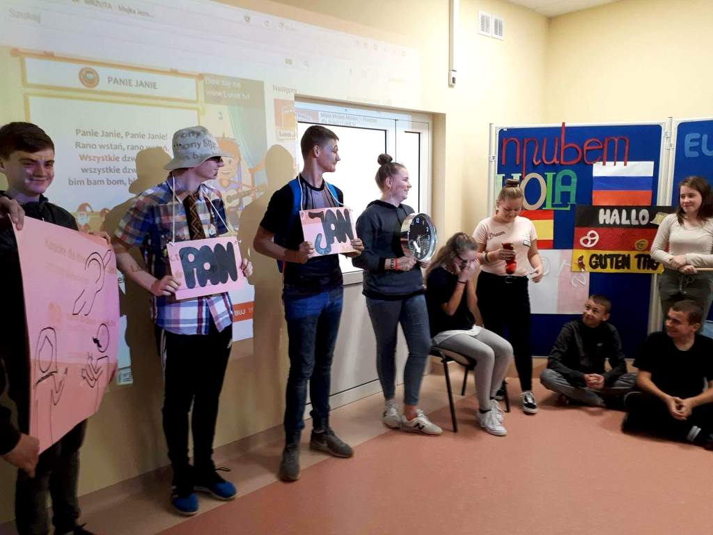 Uczniowie klas IV-VII szkoły podstawowej jak również młodzież gimnazjalna klas II i III odśpiewali piosenkę „Panie Janie „ w 5 różnych językach, które zostały losowo wybrane przez gospodarzy poszczególnych klas. Uczniowie klasy IIIa gimnazjum zaskoczyli wszystkich interpretacją piosenki „Panie Janie” w języku migowym. Ponadto każda klasa miała za zadanie przygotować flagę oraz słowo powitalne w języku, którym śpiewała piosenkę. Dzięki tym pracom powstała gazetka promująca naukę języków obcych. Uczniowie klas III gimnazjum przygotowali dwie prezentacje na temat Londynu i Moskwy, które zostały zaprezentowane społeczności szkolnej.
