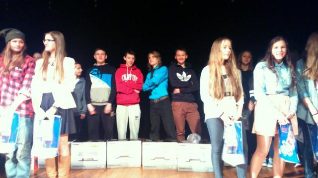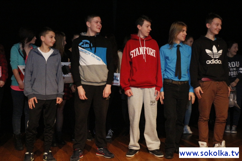 9 grudnia 2014 r. na scenie sokólskiego kina odbył się finał konkursu krótkich form teatralnych ph. „Sztuka odmawiania” z zakresu profilaktyki uzależnień. Organizatorzy akcji – Powiatowa Stacja Sanitarno-Epidemiologiczna oraz Starostwo Powiatowe i Burmistrz naszego miasta – zaprosili do udziału młodzież szkół gimnazjalnych powiatu sokólskiego. Do artystycznych zmagań przystąpiło łącznie siedem zespołów z pięciu gimnazjów, w tym dwie drużyny z naszej szkoły. Uczniowie podeszli do zadania bardzo poważne i profesjonalnie. Młodzież wraz z opiekunką, nauczycielką biologii, panią Jolantą Steckiewicz, opracowała scenariusze, przygotowała podkład muzyczny, stroje i dekoracje. Trud się opłacił, gdyż zespół uczniów klasy II a w składzie: Hubert Kieda (autor jednego ze scenariuszy), Filip Bakun, Jakub Sawicki, Michał Gojko i Artur Lingo zajął w konkursie pierwsze miejsce. Natomiast drużynie w składzie: Barbara Pyłko, Monika Trzasko, Ewa Matuszkiewicz, Gabriela Szuszkiewicz i Mateusz Wiski przyznano wyróżnienie. Ogłaszając werdykt członkowie jury podkreślili, że wybór był jednogłośny, przez co sukces naszej młodzieży jeszcze bardziej doniosły i zasłużony. Miłym akcentem było wręczenie nagród rzeczowych, ufundowanych przez Starostwo Powiatowe oraz Burmistrza Sokółki. Młodym aktorom oraz pani Steckiewicz gratulujemy oraz życzymy dalszych sukcesów na niwie artystycznej i naukowej.