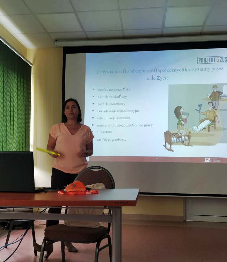 Klasy siódme naszej szkoły wzięły udział w projekcie popularyzującym wiedzę z zakresu ubezpieczeń społecznych. Tematyka została poruszona na zajęciach doradztwa zawodowego, szkolenie przeprowadziła także koordynator ds. komunikacji społecznej i edukacji.