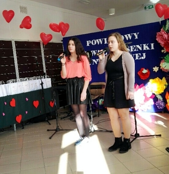 Dzisiaj uczennice naszej szkoły wzięły udział w II Festiwalu Piosenki Walentynkowej, który odbył się w Zespole Szkól Zawodowych w Sokółce. Organizatorzy zaprosili śpiewającą młodzież z całego powiatu. W tym roku udział wzięło 45 uczestników z 11 szkół. Naszą szkołę reprezentowały: