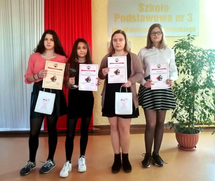 Zuzanna Uściłko i Natalia Tołłoczko z klasy 6a oraz Monika Płońska i Julia Druć z klasy IIIb gimnazjum.