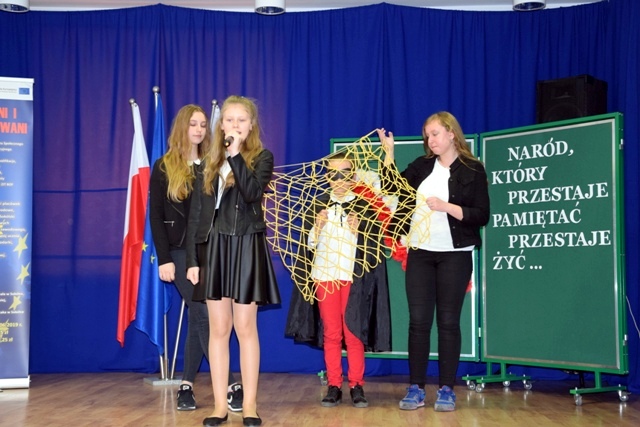 Uczennice naszej szkoły w dn. 12.04.2018r. wzięły udział w III Powiatowym Festiwalu Pieśni i Poezji Patriotycznej. Wykazały się ogromną wrażliwością oraz znajomością tekstów o tematyce patriotycznej. Uczennica klasy Va – Karolina Zalewska pięknie zaśpiewała piosenkę pt. ,,Niepodległość” wraz z towarzyszącą jej koleżanką Oliwią Ignatowicz. Natomiast uczennice klasy III a gimnazjum wzruszyły słuchaczy recytacją wierszy – Karolina Borowska tekst pt.,, Polska” Antoniego Słonimskiego, Gabriela Kucharewicz ,,Polsko ,nie jesteś Ty już niewolnicą” Leopolda Staffa. Publiczność nagrodziła występ gromkimi brawami.