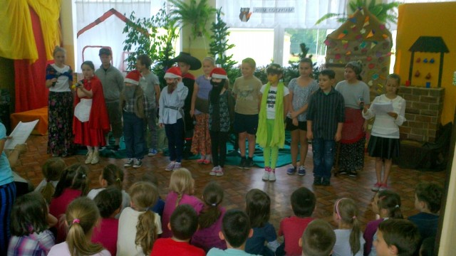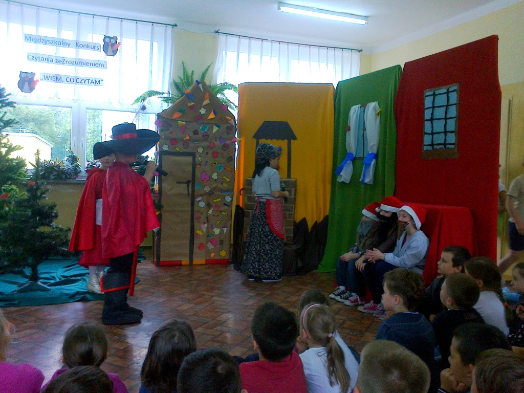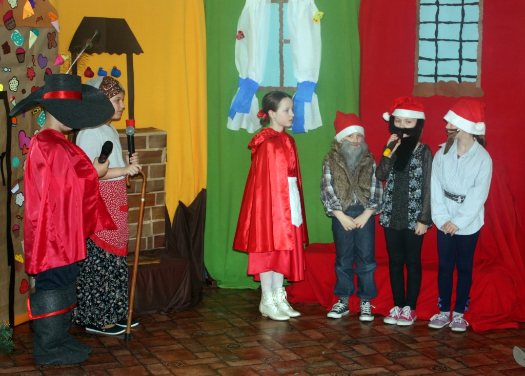 Kółko Teatralne prowadzone przez p. dyrektor Annę Andrzejewską przygotowało pełną uroku i humoru inscenizację „Spotkanie bajek”. Przedstawienie umiliło czas oczekiwania na wyniki Międzyszkolnego Konkursu Czytania ze Zrozumieniem. Młodzi aktorzy pokazali się też szerszej publiczności. Wystąpili przed swoimi kolegami i koleżankami z klas I – III oraz przed najmłodszą publiką – dziećmi z przedszkola na Osiedlu Zielonym. Dzieci bez trudu rozpoznały wymieszane bajki. Odgadły też morał opowieści – „Dobrze jest mieć dużo przyjaciół”. Aktorzy otrzymali za występ burzę oklasków i słodką niespodziankę od wychowawczyń z przedszkola.