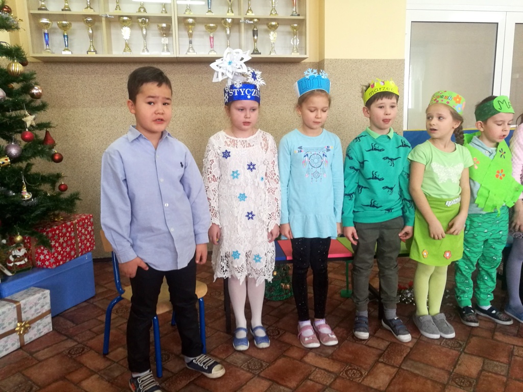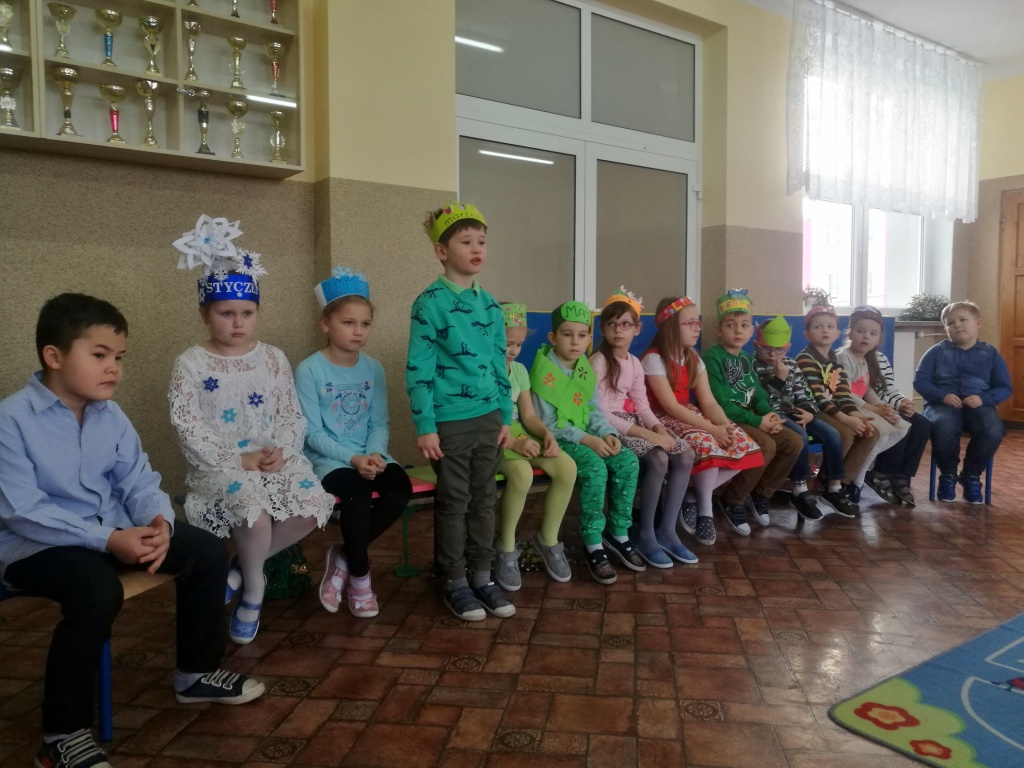 W dniu dzisiejszym dzieci z Kółka Teatralnego z klasy Ia zaprezentowały inscenizację „Wesoły Nowy Roczek”. Na przedstawienie zaproszono kolegów z klas I-IV wraz z opiekunami. Pierwszaki wystąpiły w podwójnej roli – miesięcy i pór roku. Wszystkie dzieci nie tylko pięknie recytowały swoje role, ale też ładnie śpiewały piosenki. Dodatkowym atutem występu były proste, ale czytelne przebrania oraz, jak przystało na teatralny występ, rekwizyty. Po części literacko-muzycznej odbył się quiz, w czasie którego widzowie odgadywali zagadki dotyczące miesięcy i pór roku. Ponieważ Nowy Rok jest na początku karnawału, to spotkanie zakończyły taneczne występy dziewczynek z grupy tanecznej „Rytm”, do której należą również uczennice z klasy Ia.