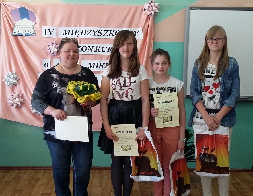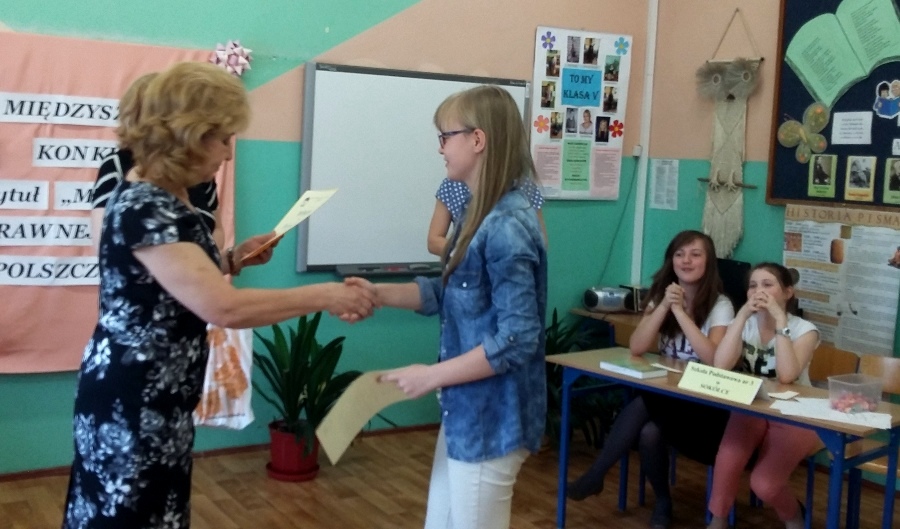 Uczennice klasy VI wzięły udział w IV Międzyszkolnym Konkursie o tytuł Mistrza Poprawnej Polszczyzny, który odbył się 5 maja w Szkole Podstawowej w Kamionce Starej. W klasyfikacji indywidualnej Julia Budrewicz zajęła II miejsce, a Gabriela Poczobutt Odlanicka i Gabriela Rabiczko uzyskały wyróżnienia. Ponadto w turnieju zespołowym dziewczęta także świetnie się spisały, osiągając II miejsce.