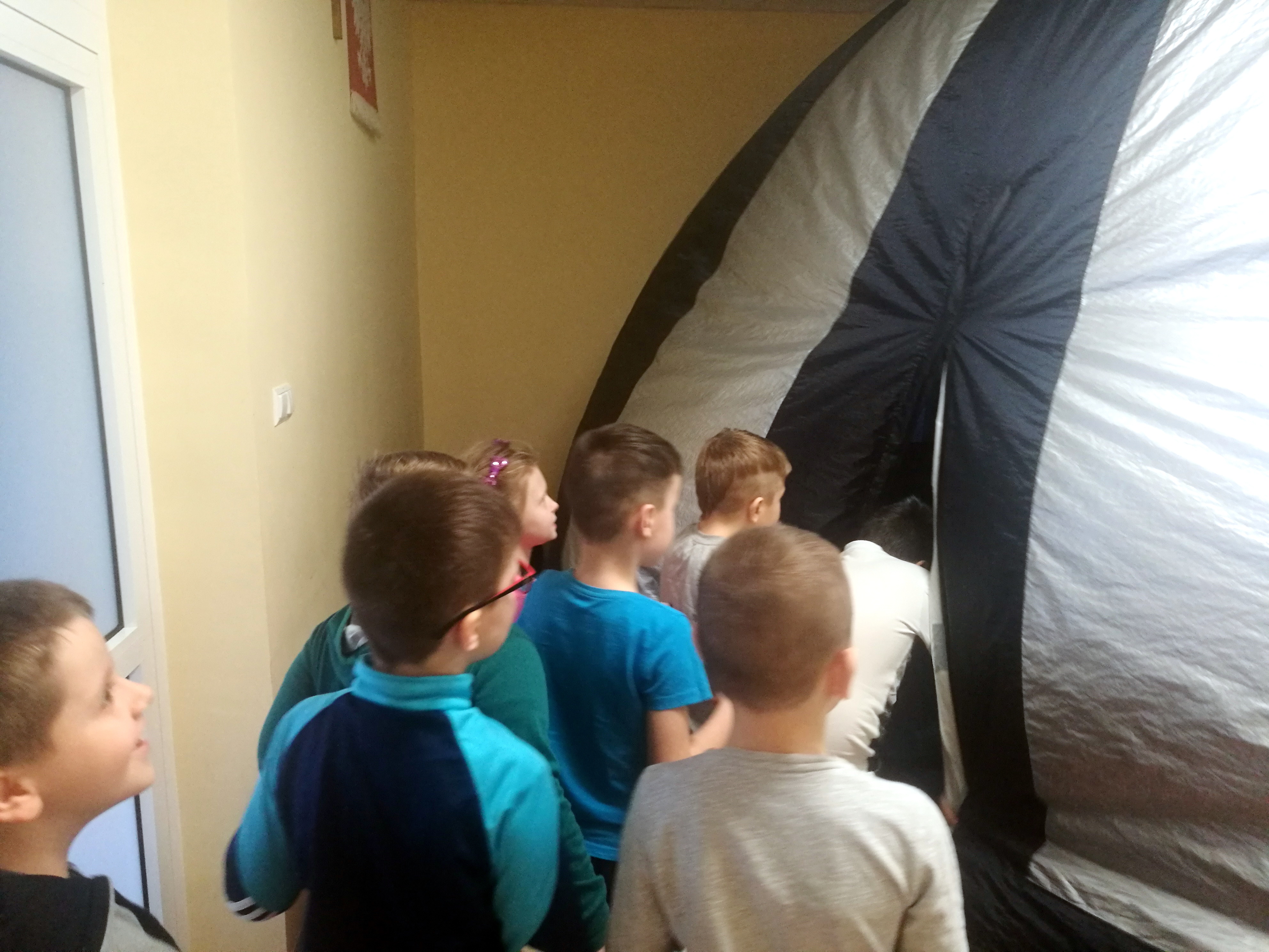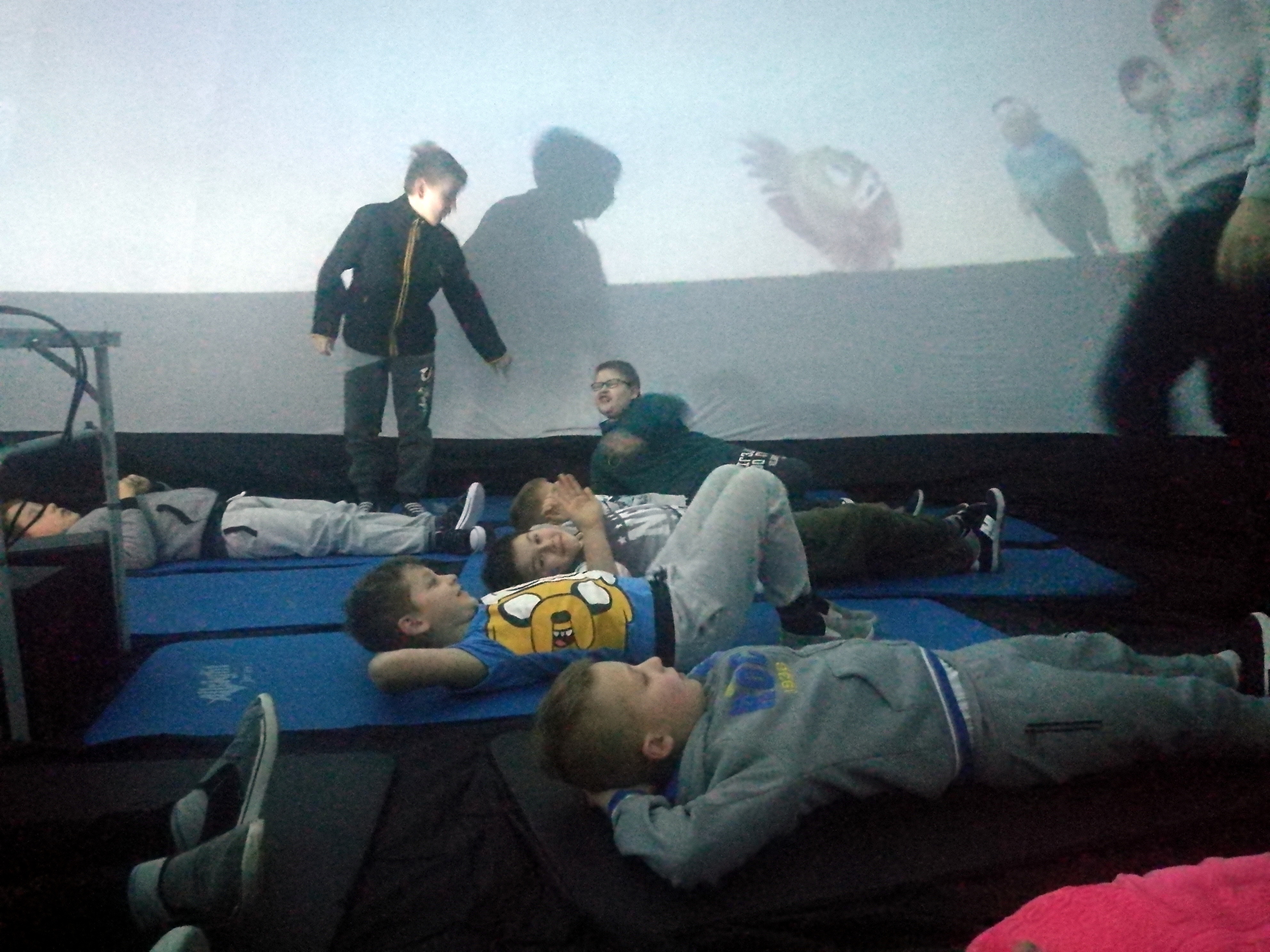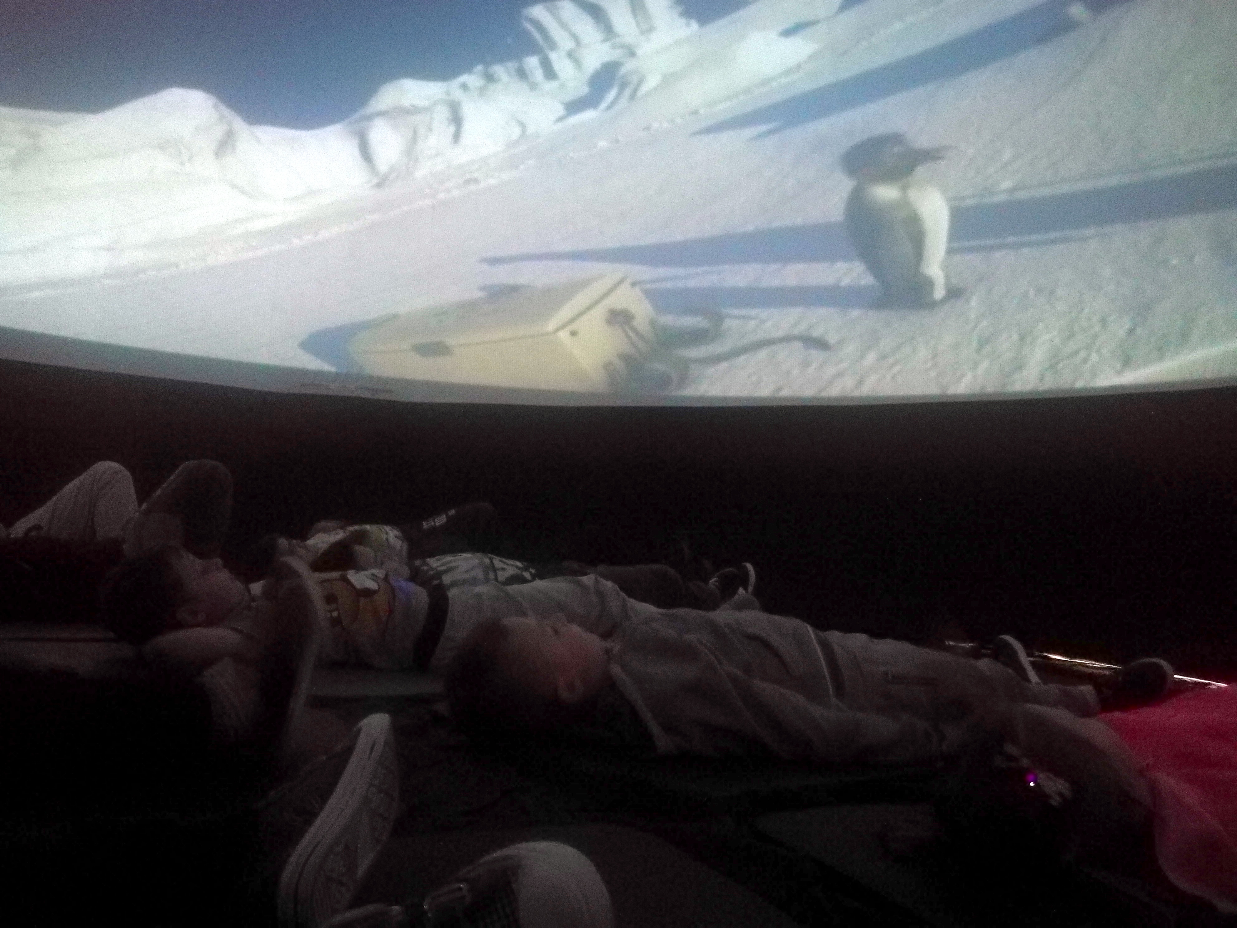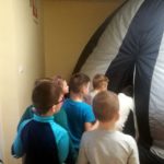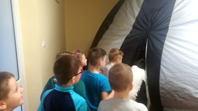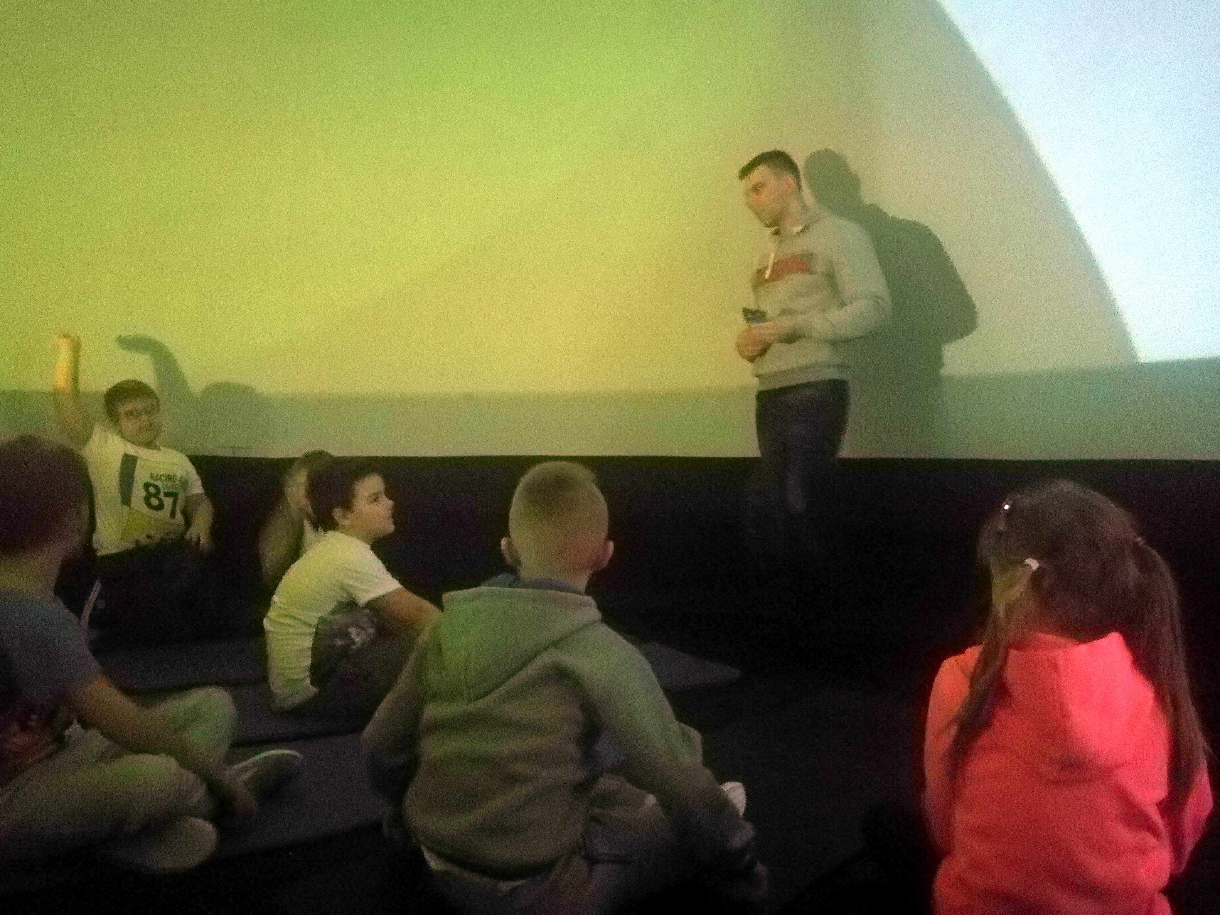 Wkrótce po powrocie z ferii na uczniów naszej szkoły czekała miła niespodzianka: pokaz kina sferycznego. Jest to kulisty systemem projekcyjny, dający możliwość wyświetlania filmów za pomocą projektorów we wszystkich kierunkach, również na obwodzie kopuły, co daje efekt pełnej przestrzeni. Dzięki temu widzowie, znajdujący się we wnętrzu kopuły, mogą oglądać obraz dookoła siebie. Uczniowie obejrzeli film pt. „Tajemnice nocy polarnej”. Seans bardzo się wszystkim podobał, wszystkich zachwyciły niepowtarzalne widoki z przestrzeni kosmicznej.