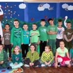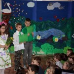 Wiosna to cudowna pora roku, dlatego pierwszy dzień jej panowania jest bardzo radosny i wyczekiwany przez wszystkich, niezależnie od wieku. Przygotowania do dnia 21 marca dzieci z klas początkowych naszej szkoły rozpoczęły dużo wcześniej: prowadząc rozmowy o zmianach zachodzących w przyrodzie, szukając oznak wiosny na spacerach, ucząc się wierszy i piosenek o tematyce wiosennej, wykonując prace plastyczne. W piątek na holu przed pokojem nauczycielskim pojawiła się tablica ze wspaniałą dekoracją autorstwa nauczycielki świetlicy, pani Jolanty Paruk, przedstawiającą wiosnę w jej najpiękniejszej, przyrodniczej odsłonie. Dziś wszystkie dzieci i dorosłych obowiązywał zielony strój, przez co w szkole zrobiło się niezwykle wesoło i ciepło, mimo chmur, deszczu i zimna za oknem. Miłymi gośćmi były maluchy z zaprzyjaźnionego przedszkola „Zielny Zakątek” z grupy sześciolatków oraz ich panie nauczycielki. Uroczystość rozpoczęła się od prezentacji multimedialnej „Witaj Wiosno”, przygotowanej przez panią Zofię Kowalczuk, po której odbył się quiz wiedzy o wiośnie. Następnie dzieci z klasy drugiej przedstawiły inscenizację „Przyjście wiosny”, przygotowaną pod okiem wychowawczyni, pani Doroty Kamińskiej. Wszystkie klasy zaprezentowały się kolegom z przedszkola w mini-recitalu piosenkarskim dotyczącym przyjścia wiosny, a na koniec pani Barbara Chancewicz zaprosiła do improwizacji muzycznej „Taniec motyli”. Kukłę marzanny potraktowano niezwykle humanitarnie i ekologicznie chowając ją do worka, by tam poczekała na powrót zimy. Ostatnim akcentem powitania wiosny było zrobienie pamiątkowych zdjęć.