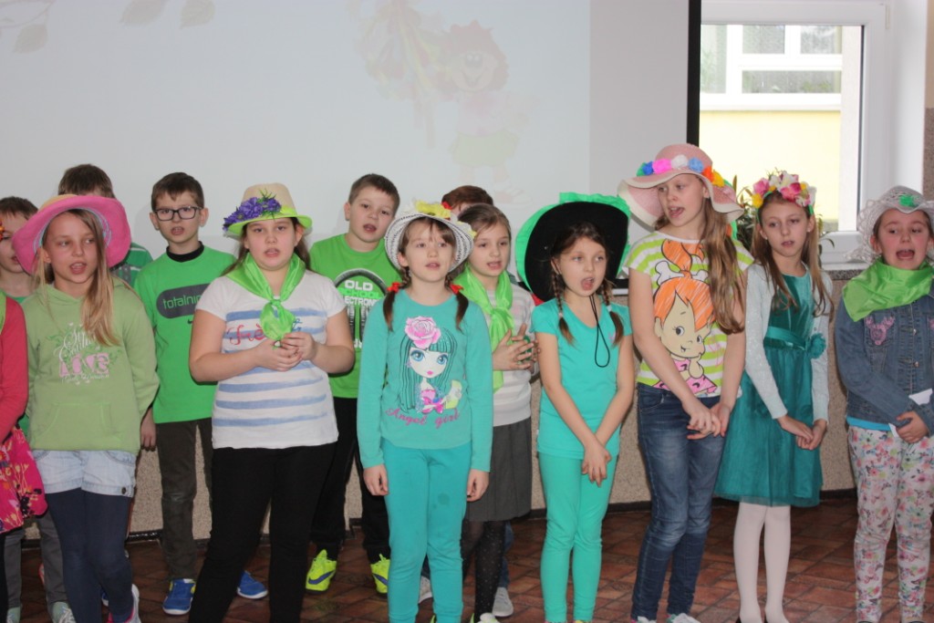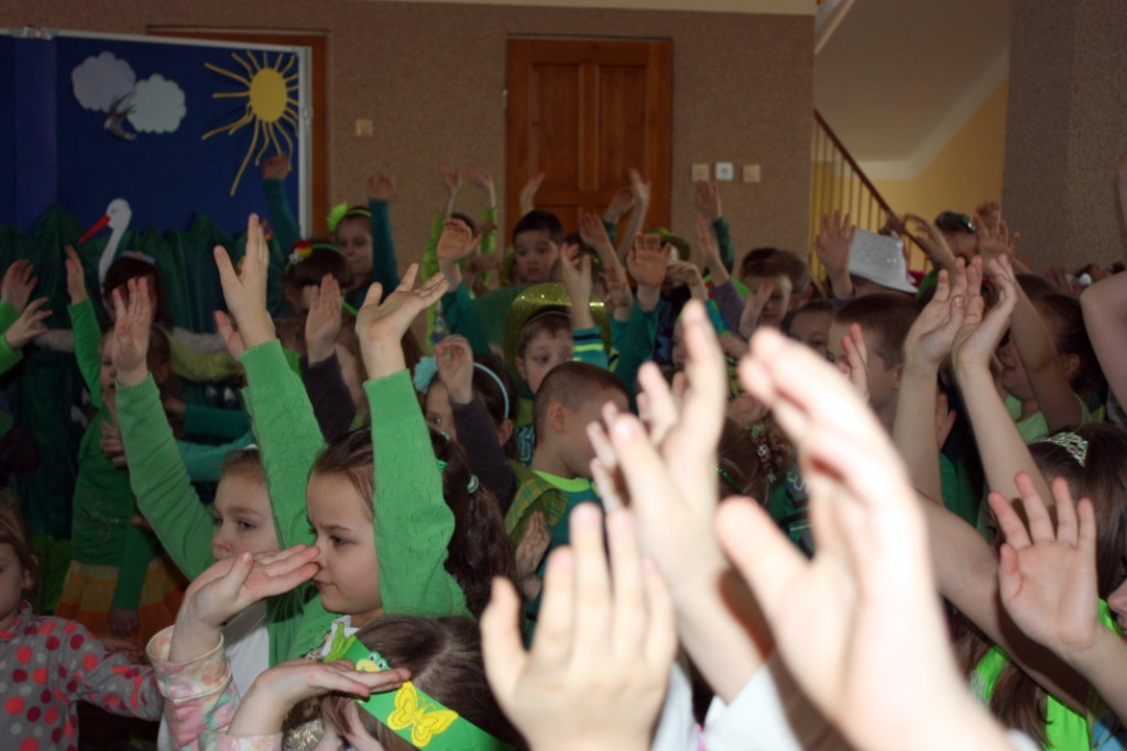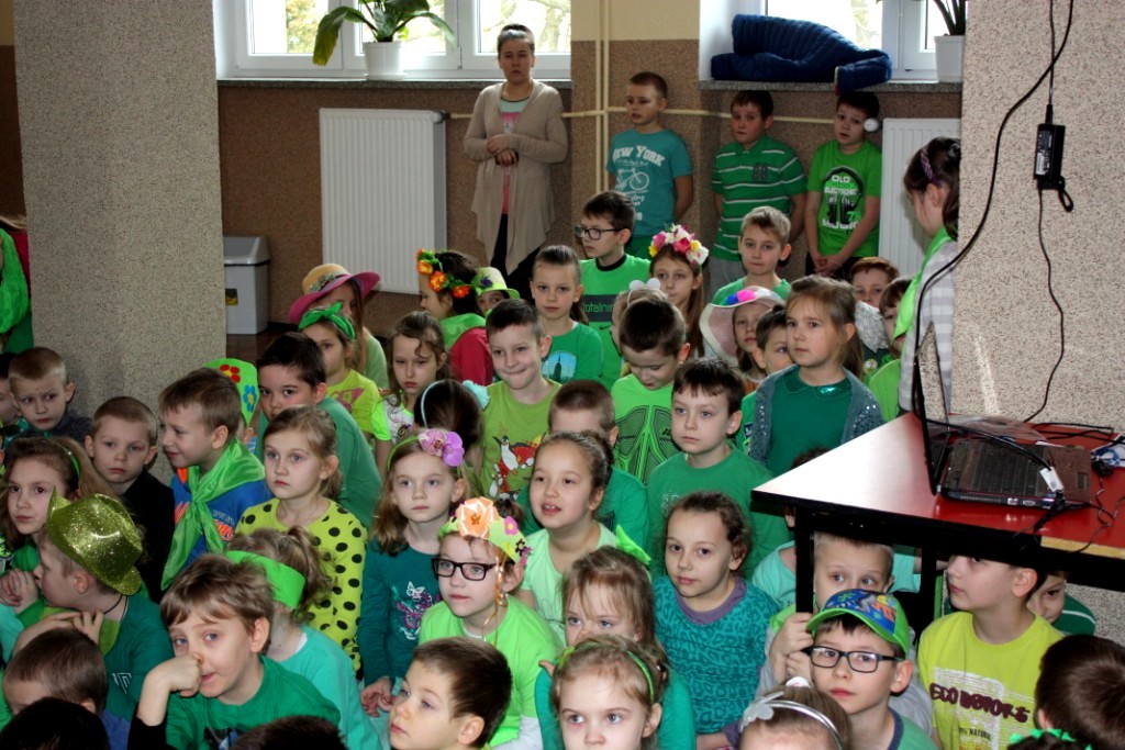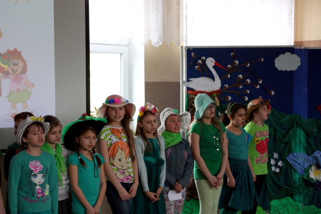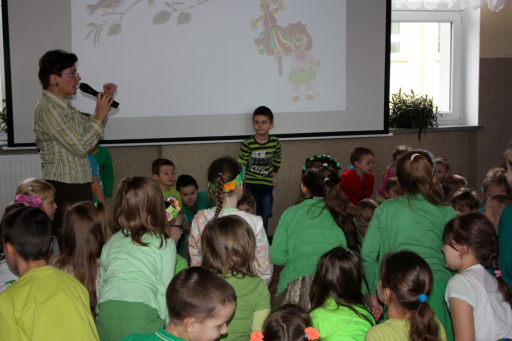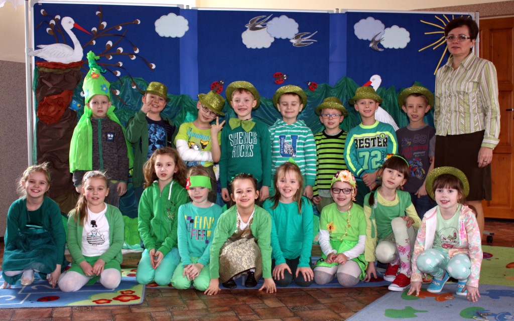 Wiosna to cudowna pora roku, dlatego pierwszy dzień jej panowania jest bardzo radosny i wyczekiwany przez wszystkich, niezależnie od wieku. Przygotowania do dnia 21 marca dzieci z klas początkowych naszej szkoły rozpoczęły dużo wcześniej: prowadząc rozmowy o zmianach zachodzących w przyrodzie, szukając oznak wiosny na spacerach, ucząc się wierszy i piosenek o tematyce wiosennej, wykonując prace plastyczne. W piątek na holu przed pokojem nauczycielskim pojawiła się tablica ze wspaniałą dekoracją autorstwa nauczycielki świetlicy, pani Jolanty Paruk, przedstawiającą wiosnę w jej najpiękniejszej, przyrodniczej odsłonie. Dziś wszystkie dzieci i dorosłych obowiązywał zielony strój, przez co w szkole zrobiło się niezwykle wesoło i ciepło, mimo chmur, deszczu i zimna za oknem. Miłymi gośćmi były maluchy z zaprzyjaźnionego przedszkola „Zielny Zakątek” z grupy sześciolatków oraz ich panie nauczycielki. Uroczystość rozpoczęła się od prezentacji multimedialnej „Witaj Wiosno”, przygotowanej przez panią Zofię Kowalczuk, po której odbył się quiz wiedzy o wiośnie. Następnie dzieci z klasy drugiej przedstawiły inscenizację „Przyjście wiosny”, przygotowaną pod okiem wychowawczyni, pani Doroty Kamińskiej. Wszystkie klasy zaprezentowały się kolegom z przedszkola w mini-recitalu piosenkarskim dotyczącym przyjścia wiosny, a na koniec pani Barbara Chancewicz zaprosiła do improwizacji muzycznej „Taniec motyli”. Kukłę marzanny potraktowano niezwykle humanitarnie i ekologicznie chowając ją do worka, by tam poczekała na powrót zimy. Ostatnim akcentem powitania wiosny było zrobienie pamiątkowych zdjęć.
