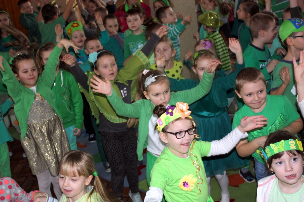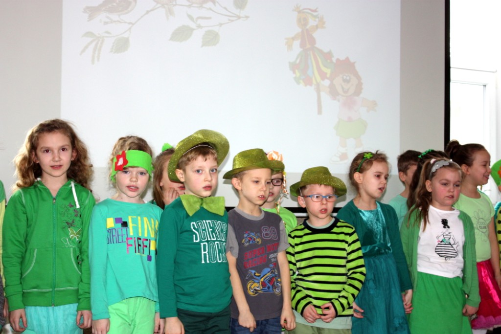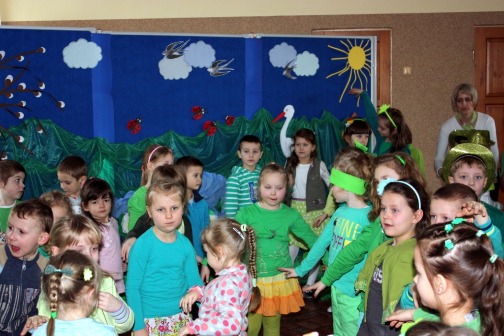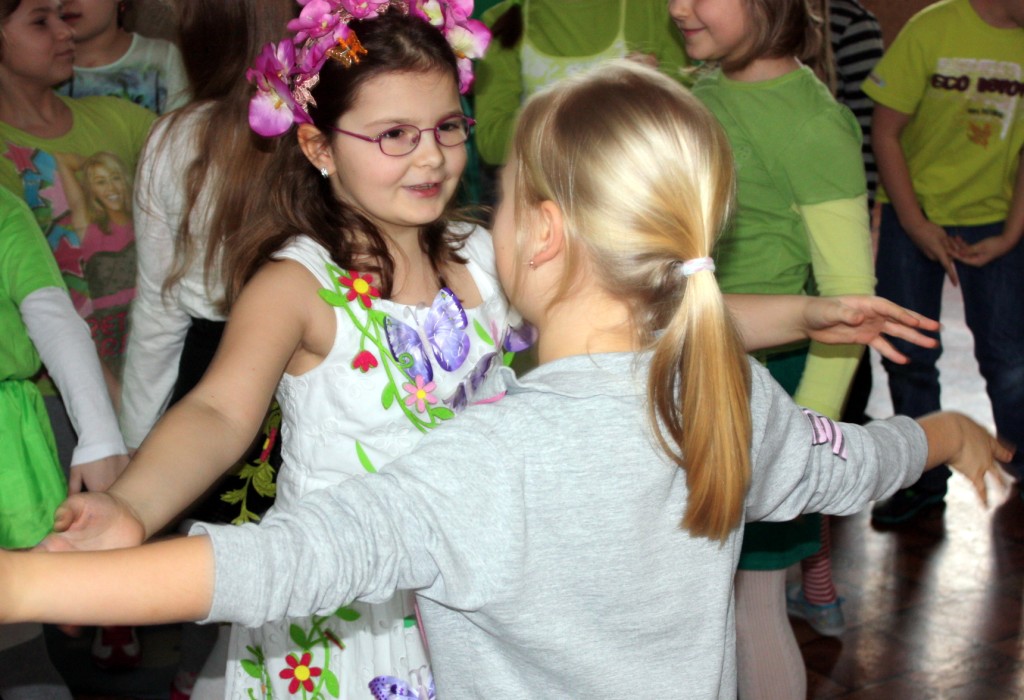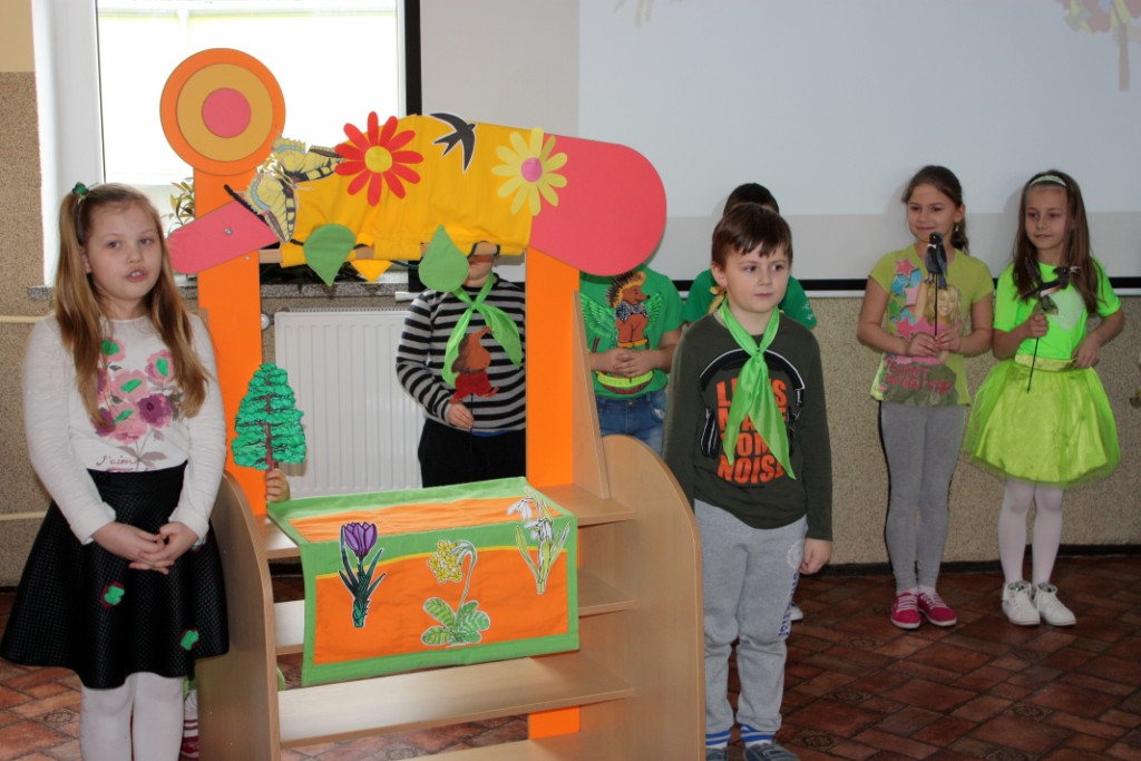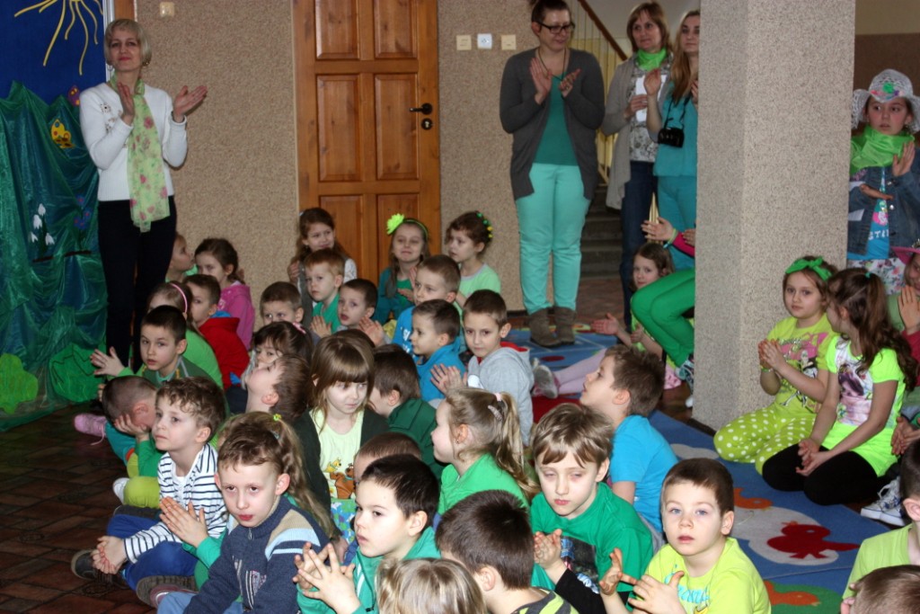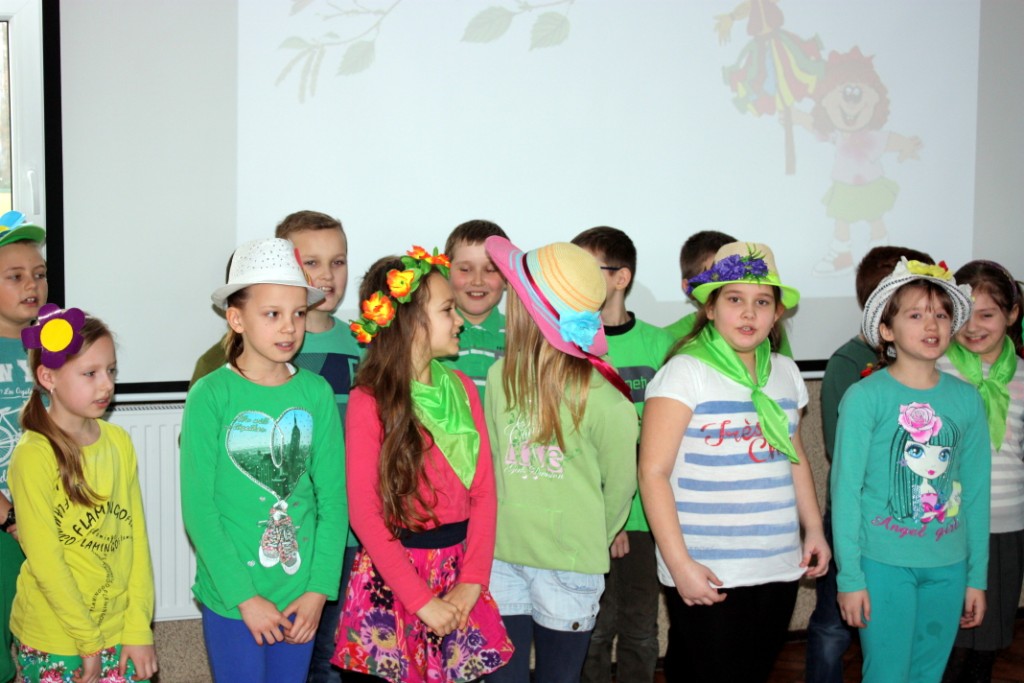 Wiosna to cudowna pora roku, dlatego pierwszy dzień jej panowania jest bardzo radosny i wyczekiwany przez wszystkich, niezależnie od wieku. Przygotowania do dnia 21 marca dzieci z klas początkowych naszej szkoły rozpoczęły dużo wcześniej: prowadząc rozmowy o zmianach zachodzących w przyrodzie, szukając oznak wiosny na spacerach, ucząc się wierszy i piosenek o tematyce wiosennej, wykonując prace plastyczne. W piątek na holu przed pokojem nauczycielskim pojawiła się tablica ze wspaniałą dekoracją autorstwa nauczycielki świetlicy, pani Jolanty Paruk, przedstawiającą wiosnę w jej najpiękniejszej, przyrodniczej odsłonie. Dziś wszystkie dzieci i dorosłych obowiązywał zielony strój, przez co w szkole zrobiło się niezwykle wesoło i ciepło, mimo chmur, deszczu i zimna za oknem. Miłymi gośćmi były maluchy z zaprzyjaźnionego przedszkola „Zielny Zakątek” z grupy sześciolatków oraz ich panie nauczycielki. Uroczystość rozpoczęła się od prezentacji multimedialnej „Witaj Wiosno”, przygotowanej przez panią Zofię Kowalczuk, po której odbył się quiz wiedzy o wiośnie. Następnie dzieci z klasy drugiej przedstawiły inscenizację „Przyjście wiosny”, przygotowaną pod okiem wychowawczyni, pani Doroty Kamińskiej. Wszystkie klasy zaprezentowały się kolegom z przedszkola w mini-recitalu piosenkarskim dotyczącym przyjścia wiosny, a na koniec pani Barbara Chancewicz zaprosiła do improwizacji muzycznej „Taniec motyli”. Kukłę marzanny potraktowano niezwykle humanitarnie i ekologicznie chowając ją do worka, by tam poczekała na powrót zimy. Ostatnim akcentem powitania wiosny było zrobienie pamiątkowych zdjęć.