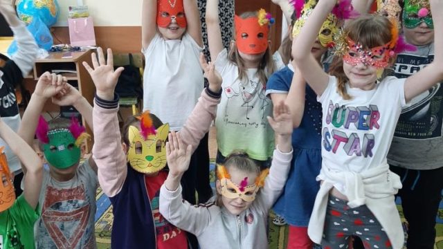 Filia nr 1 Biblioteki Publicznej w Sokółce z okazji Dnia Kota przygotowała miłą niespodziankę. w ramach promocji czytelnictwa, w szkolnej świetlicy odbył się „Koci karnawał”. Bibliotekarka, Marta Wojewódzka-Szoda przeczytała napisany przez siebie na tę okoliczność wiersz pt. „Koci karnawał”, a potem zaczęła się zabawa – z dużym zaangażowaniem dzieci przygotowały kocie maski karnawałowe i zaczęły się kocie tańce i „śpiewańce”. Było radośnie i skocznie. Dzieci obiecały odwiedzić bibliotekę, by zapoznać się z kocim tematem w literaturze.