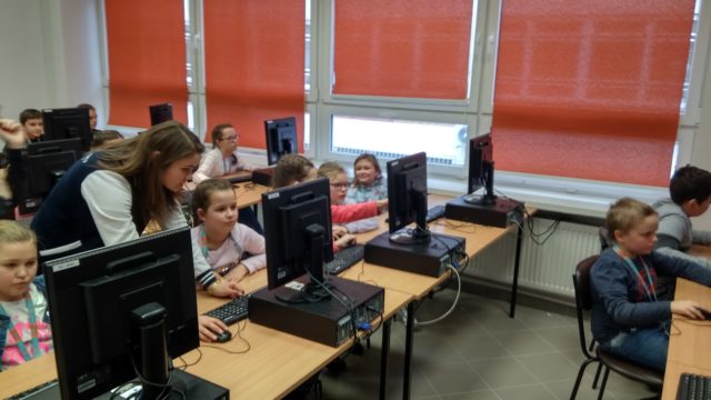 W dniu 9 marca uczniowie naszej szkoły wzięli udział w zajęciach Podlaskiego Uniwersytetu Dziecięcego. Tematyką zajęć było „Spotkanie z programowaniem” oraz „Matematyka krzywa i symetryczna”. Uczniowie stworzyli prostą grę typu Labirynt przy użyciu programu Blender, a na zajęciach matematycznych rysowali obrazy w symetrii osiowej, punktowej i przekształceniach, które nie są izomeriami.