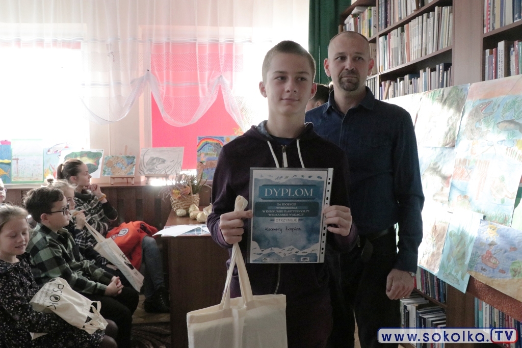 37 uczniów naszej szkoły wzięło udział w konkursie plastycznym „Wędkarskie wakacje” zorganizowanym przez Koło Polskiego Związku Wędkarskiego i Bibliotekę Publiczną w Sokółce. Dnia 09.11.2022 r. odbyło się uroczyste wręczenie nagród. 12 uczniów zostało nagrodzonych, pozostali uczestnicy otrzymali dyplomy i nagrody pocieszenia.