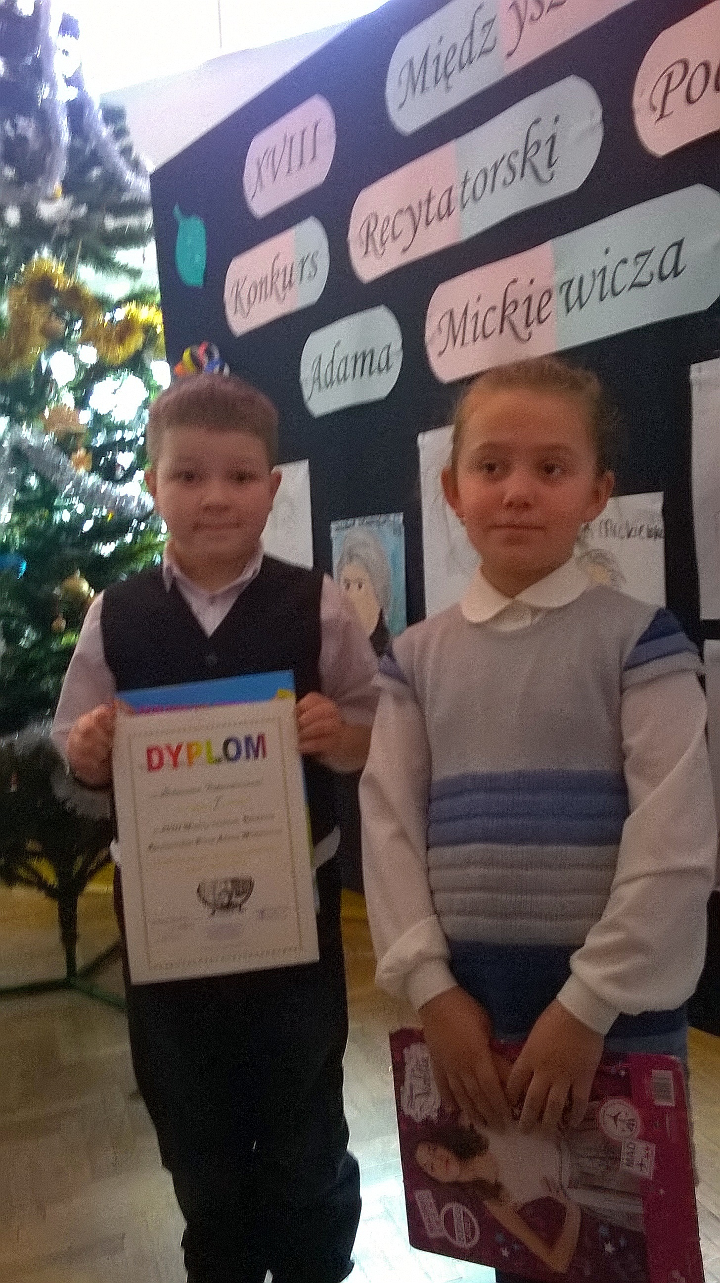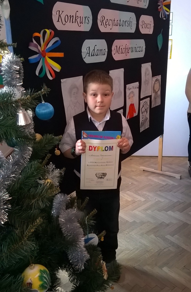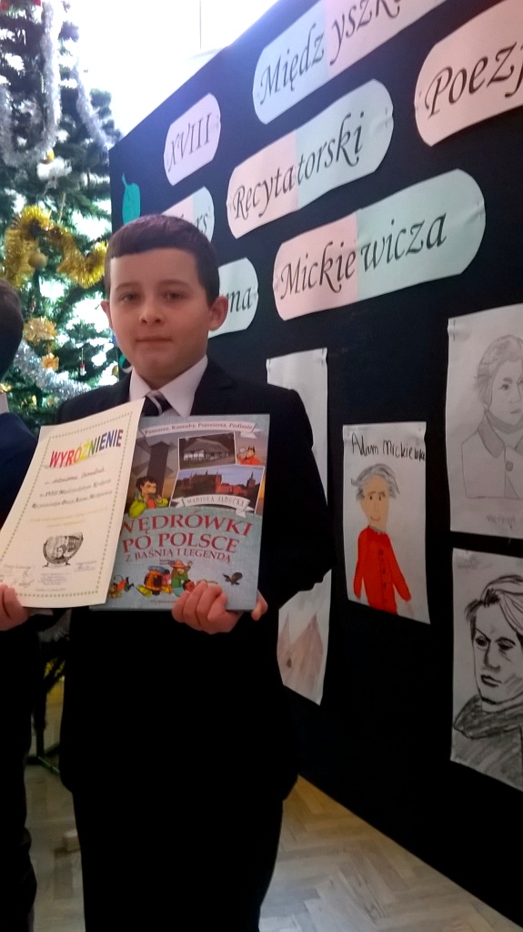 W dniu 13 grudnia w Szkole Podstawowej nr 1 odbył się XVIII Międzyszkolny Konkurs Recytatorski Poezji Adama Mickiewicza. W tegorocznych zmaganiach wzięło udział 113 zawodników z osiemnastu szkół miasta i gminy Sokółka. Nasza szkoła również wystawiła grupę swoich reprezentantów z klas I-VI, którzy mimo dużej konkurencji i wysokiego poziomu trudności wypadli bardzo dobrze. Oto, jak przedstawiają się wyniki artystycznych zmagań: