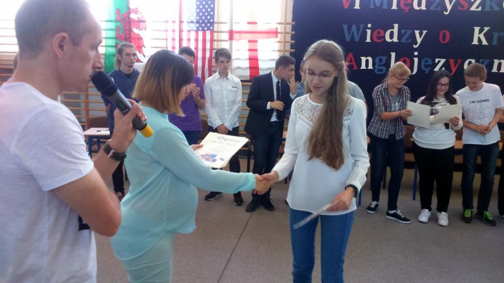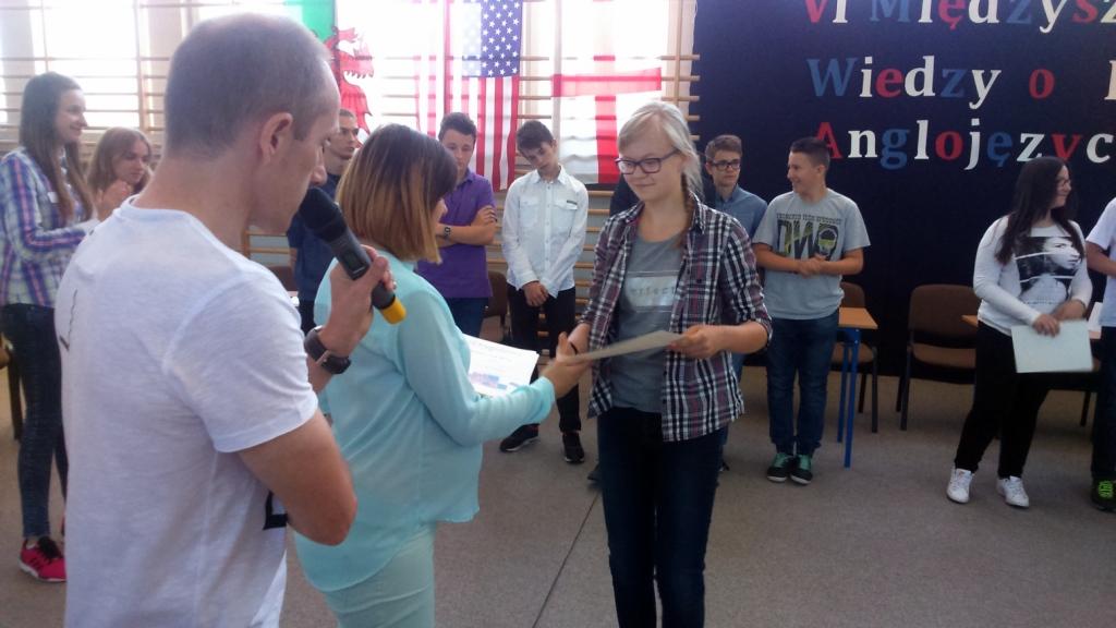 Drużyny, które zajęły trzy pierwsze miejsca otrzymały atrakcyjne nagrody (elektroniczne kolumny, słuchawki, USB), pozostali uczestnicy otrzymali pamiątkowe dyplomy. Wszystkie nagrody zostały ufundowane przez sponsorów konkursu: Burmistrza Miasta i Gminy Sokółka, firmę Metal Fach Sokółka, oraz wydawnictwo Oxford University Press. Organizatorzy pani Katarzyna Chociej, pani Marta Jóźwik oraz pan Sławomir Rochalski składają serdeczne podziękowania uczestnikom oraz wszystkim osobom zaangażowanym w przygotowanie konkursu. Dziękujemy i zapraszamy za rok!