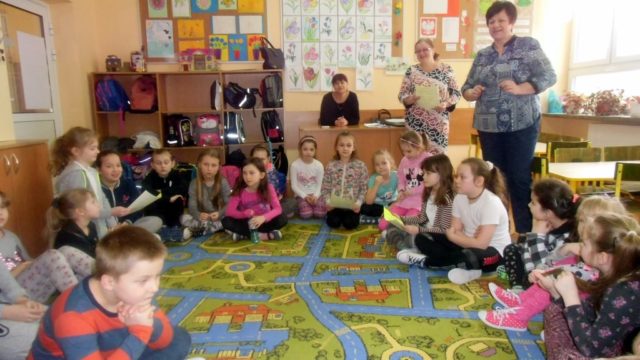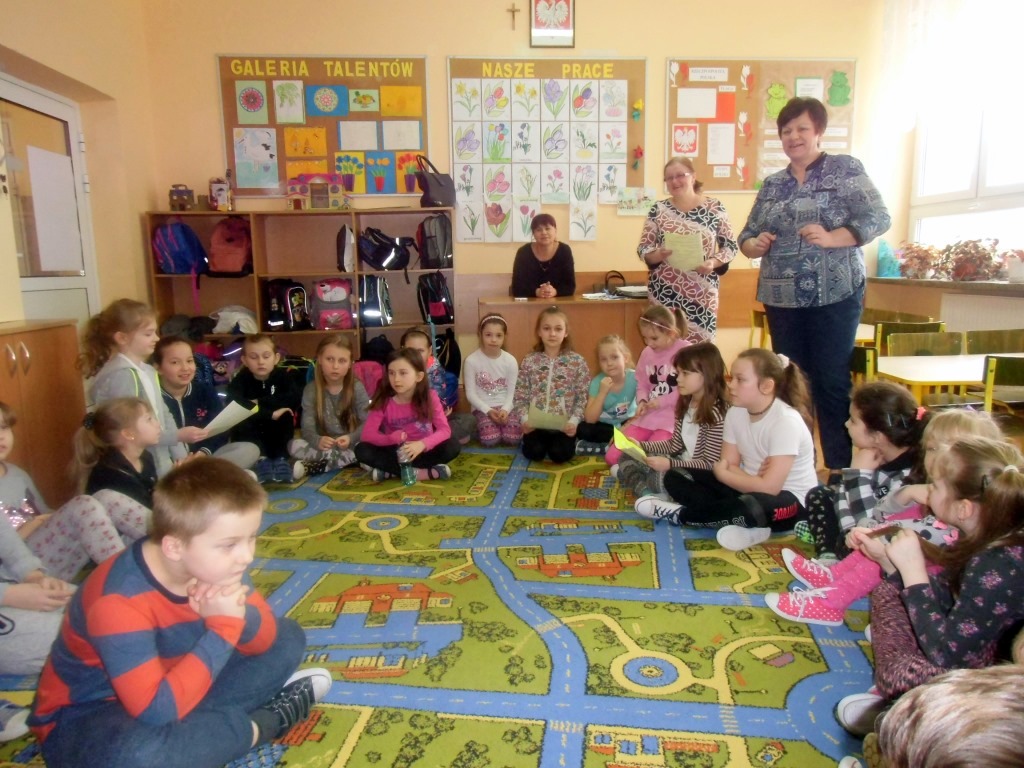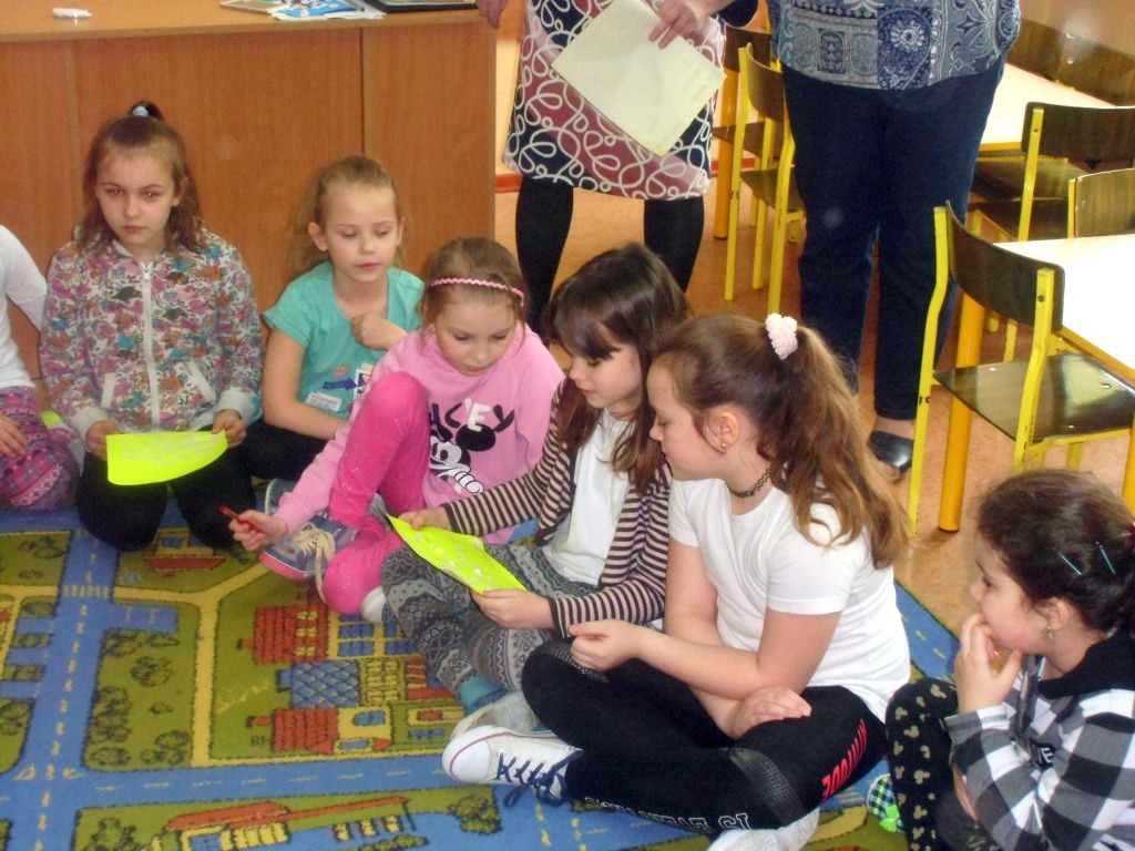 Kolejny raz w świetlicy szkolnej gościły Panie Ewelina i Krystyna z Filii Biblioteki Publicznej w Sokółce. W związku z przypadającym dnia 21. 03.2018 roku Światowym Dniem Poezji, przeprowadziły zajęcia promujące czytelnictwo i zamiłowanie do poezji. Przeczytały dzieciom ciekawe utwory z wykorzystaniem pacynek i rekwizytów. Następnie uczniowie z rozsypanki wyrazowej, pracując w grupach tworzyły własną poezję.Na zakończenie zajęć zaprezentowały własną twórczość.Spotkanie zakończyło się podziękowaniem ze strony uczniów i nauczycieli świetlicy.