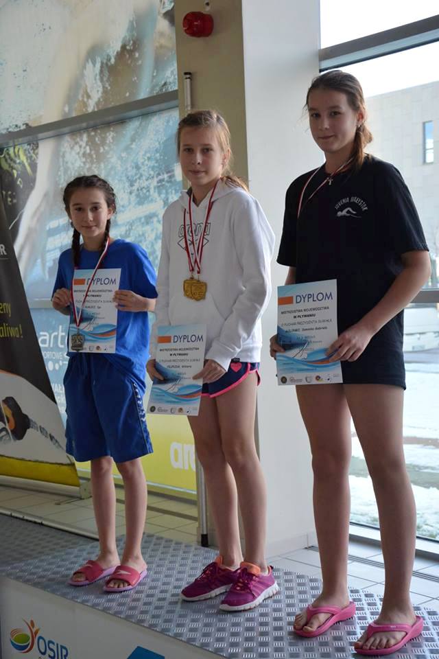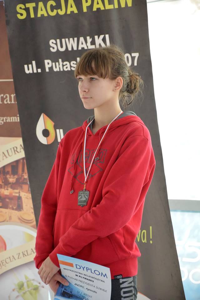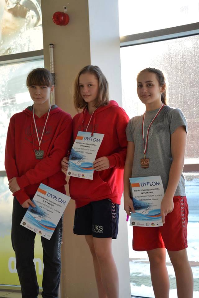 W dniach 2-3 grudnia 2016 r. odbyły się Mistrzostwa Województwa Podlaskiego w pływaniu o Puchar Prezydenta Miasta Suwałk. W dwudniowych zmaganiach wzięło udział około 331 zawodniczek i zawodników z 12 klubów naszego województwa. Były to najważniejsze zawody pływackie w tym roku o zasięgu regionalnym. Trzy uczennice naszej szkoły: Agnieszka Ancypo /klasa Ia gimnazjum/, Gabriela Poczobutt Odlanicka /klasa IIb gimnazjum/ oraz Iga Kuklicz /klasa IV SP/ zdobyły w tej imprezie aż 11 medali.