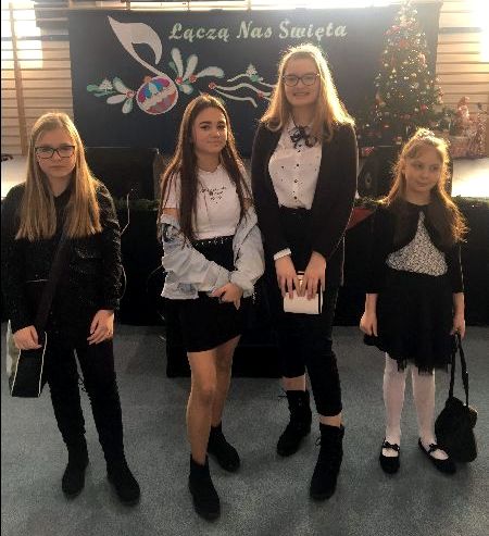 Dnia 16 stycznia uczennice naszej szkoły wzięły udział w Międzyszkolnym Festiwalu Kolęd, Pastorałek i Piosenek Bożonarodzeniowych pt. „Łączą nas Święta”, który odbył się w Szkole Podstawowej z Oddziałami Integracyjnymi nr 2 w Sokółce. W festiwalu tym wystąpili uczniowie ze szkół naszego powiatu oraz młodzi przedstawiciele sokólskich parafii. Usłyszeliśmy 23 utwory w ich wykonaniu. Naszą szkołę reprezentowało pięć wokalistek: